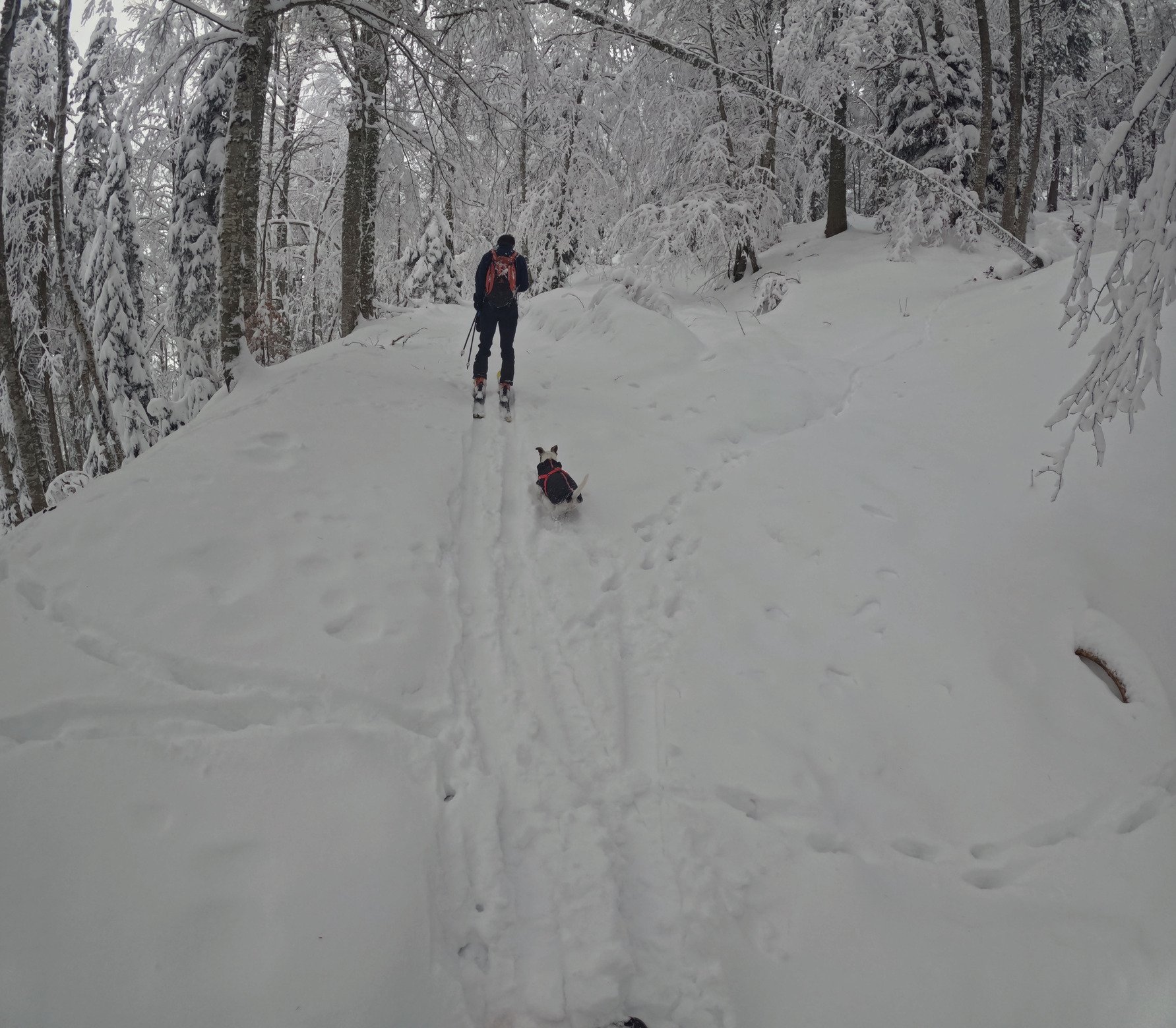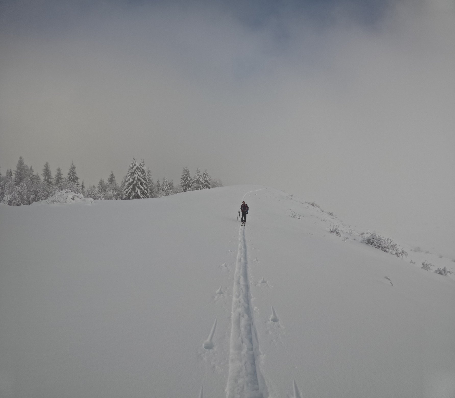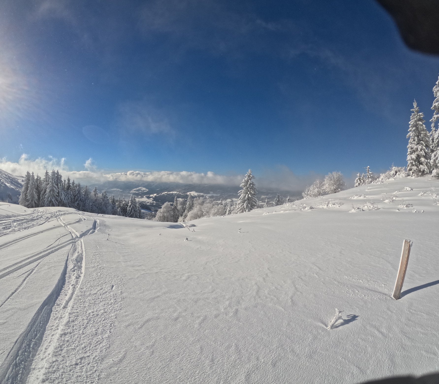 Première sortie peau de phoque à la maison. Départ d'haberes à 950m dans 30 cm de neige légère, ce qui permet de montée dans un joli single forestier bien chargé. Sur les crêtes, c'est 40cm de poudre douce et facile à tracer, car une couche dense en fond. En descente, la skiabilité est excellente ce qui donne la motivation pour enchaîner...mais dommage faut retourner au taf...Un étonnant fin novembre en Chablais.