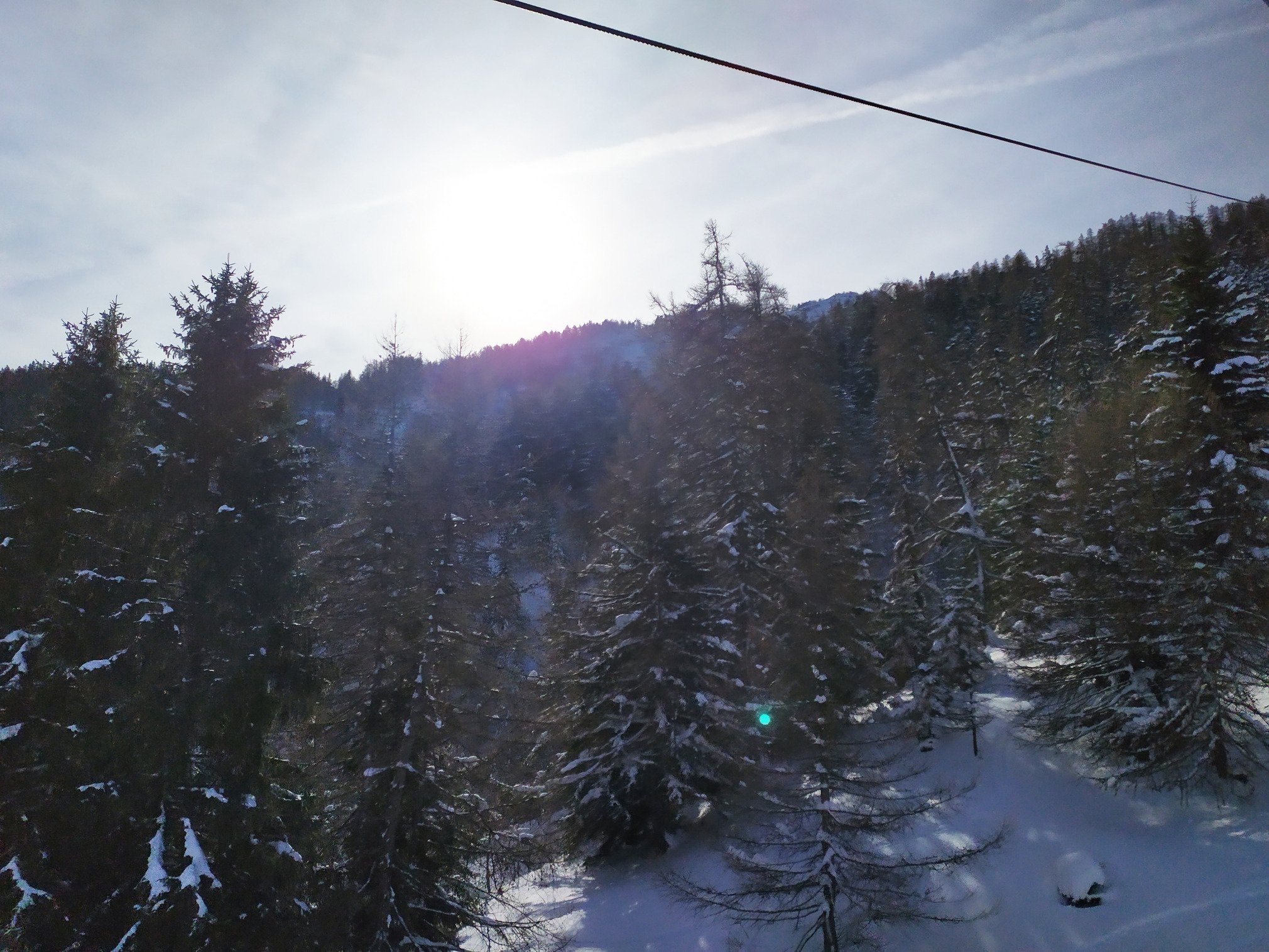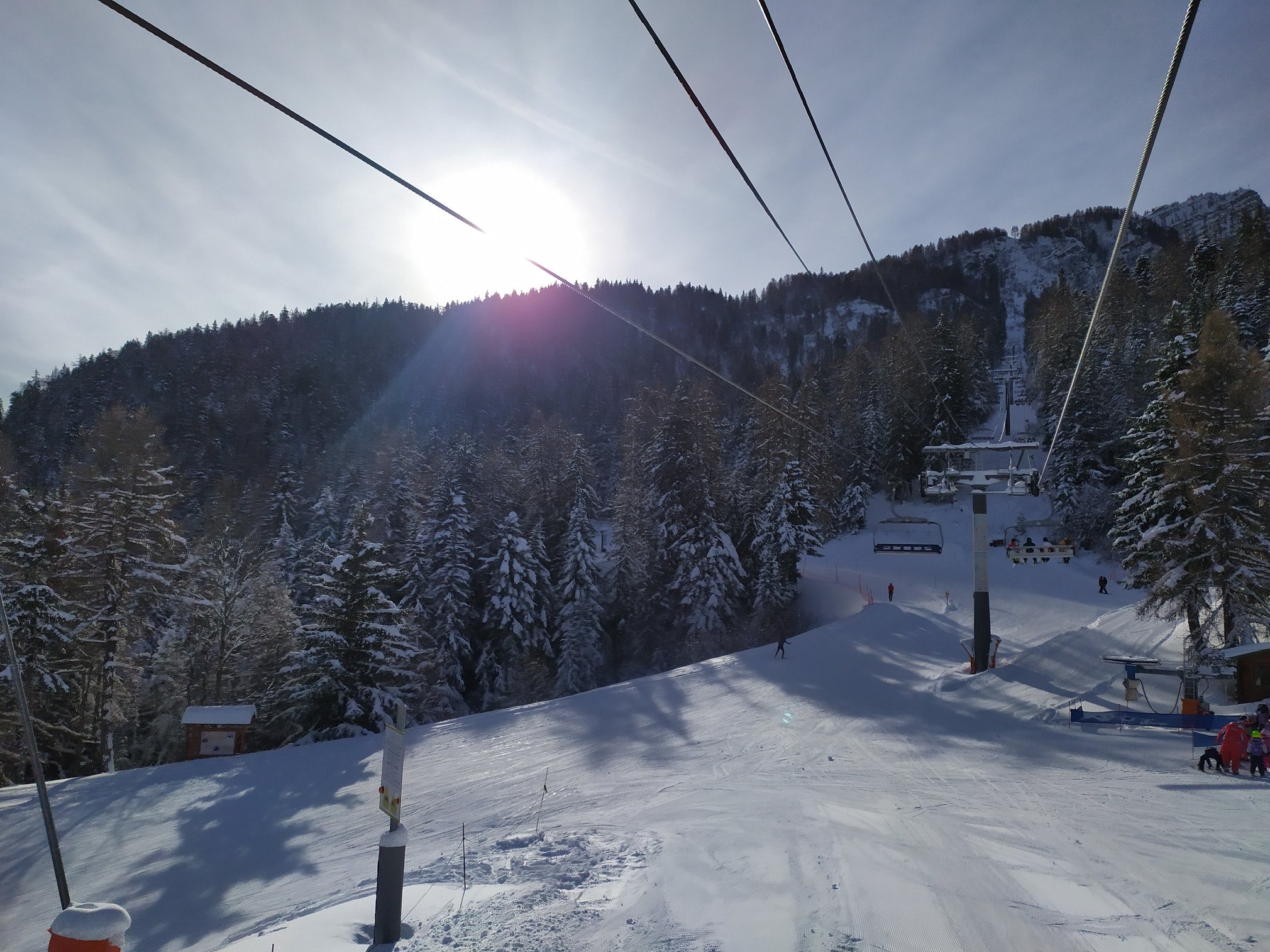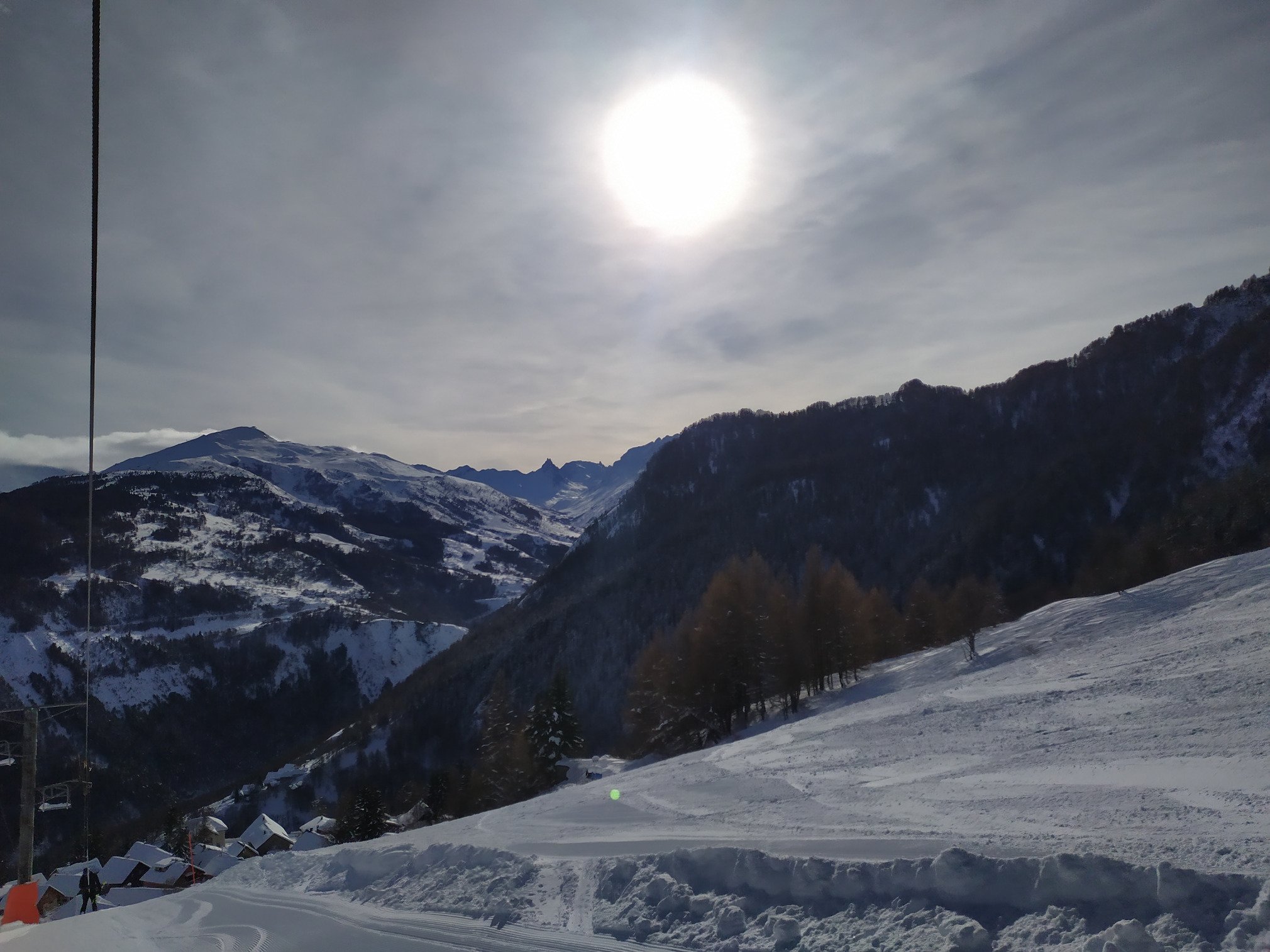 -deja la route est tellement belle, avec les sapins enneigés et le fond de vallée blanc et scintillant, que ça vaut le coup de venir juste pour ça. ensuite , personne sur la route, qui est quasi complètement déneigée. la fréquentation est tres raisonnable, bien mieux qu hier, me dit on , où c était blindé.