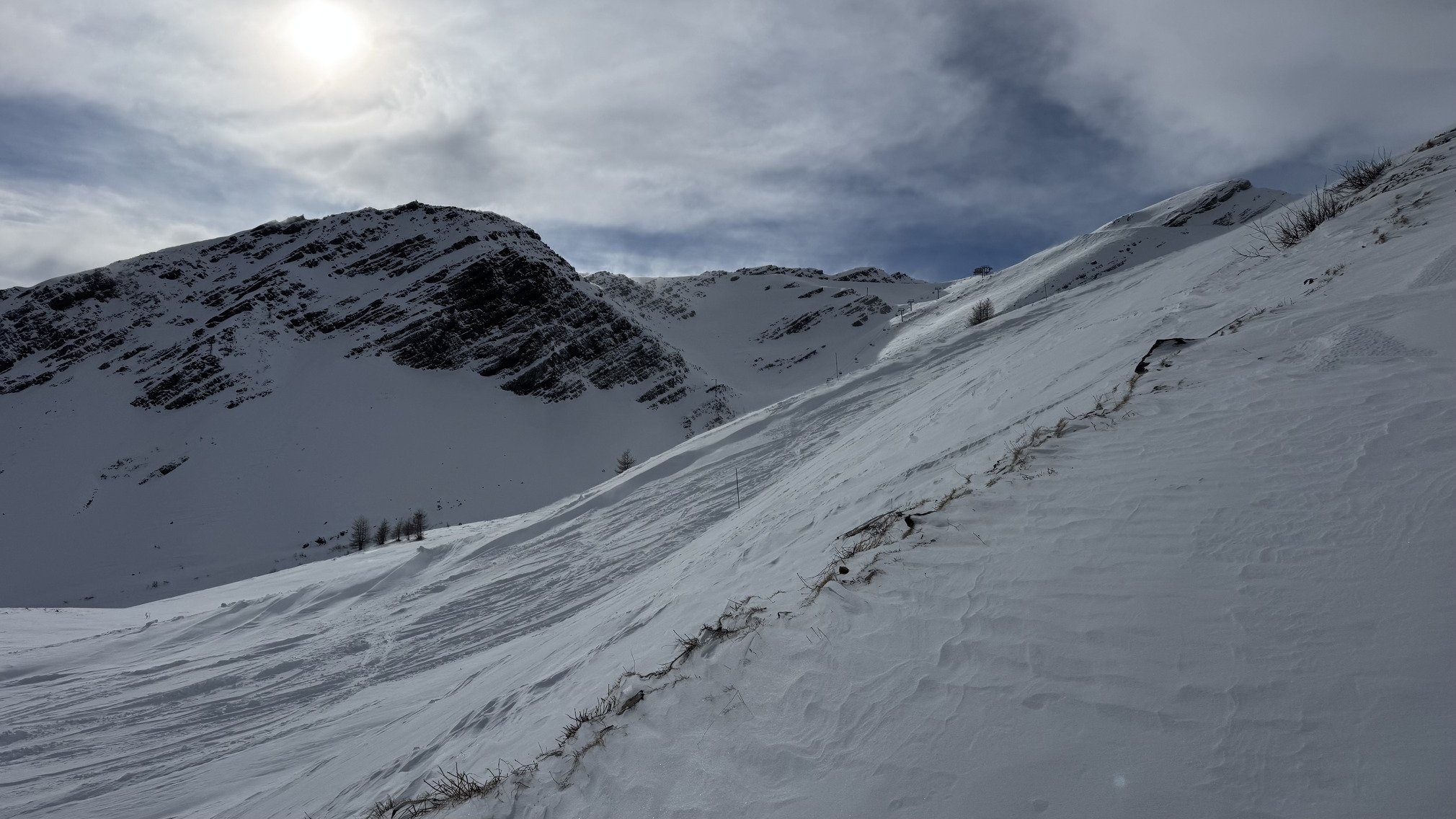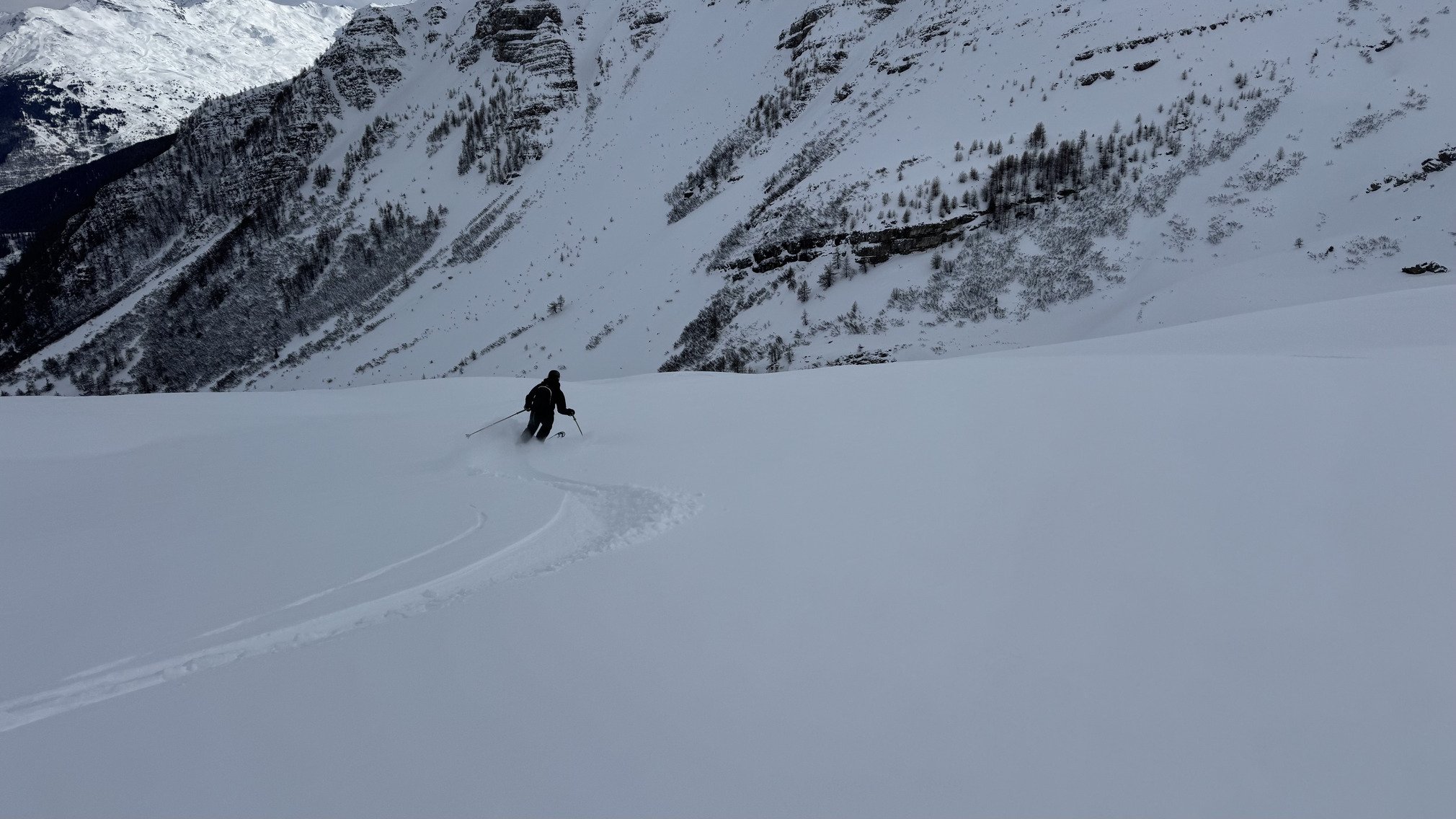 Après quelques pistes on l’a donc déposé à la cabane pour repartir faire un tour avant de rentrer manger et passer en mode ski/luge bébé. Personne dans les vallons, seuls 2/3 randonneurs ont fait un AR au col. La petite couche de fraîche sur le fond dur est bien agréable et tendre, tant qu’on évite les zones ventés où elle est changeante et compacte. Les couleurs sont encore intacts 👀
