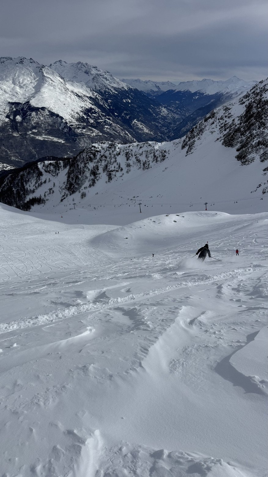 Il a neigé 10cm vendredi soir, toute légère et douce. Le damage est habituel à la station, c’est à dire, inexistant 😂 Au bonheur de certains mais plus compliqué pour d’autres (aka la sister).