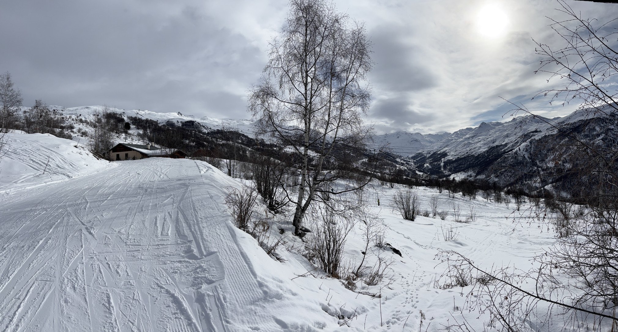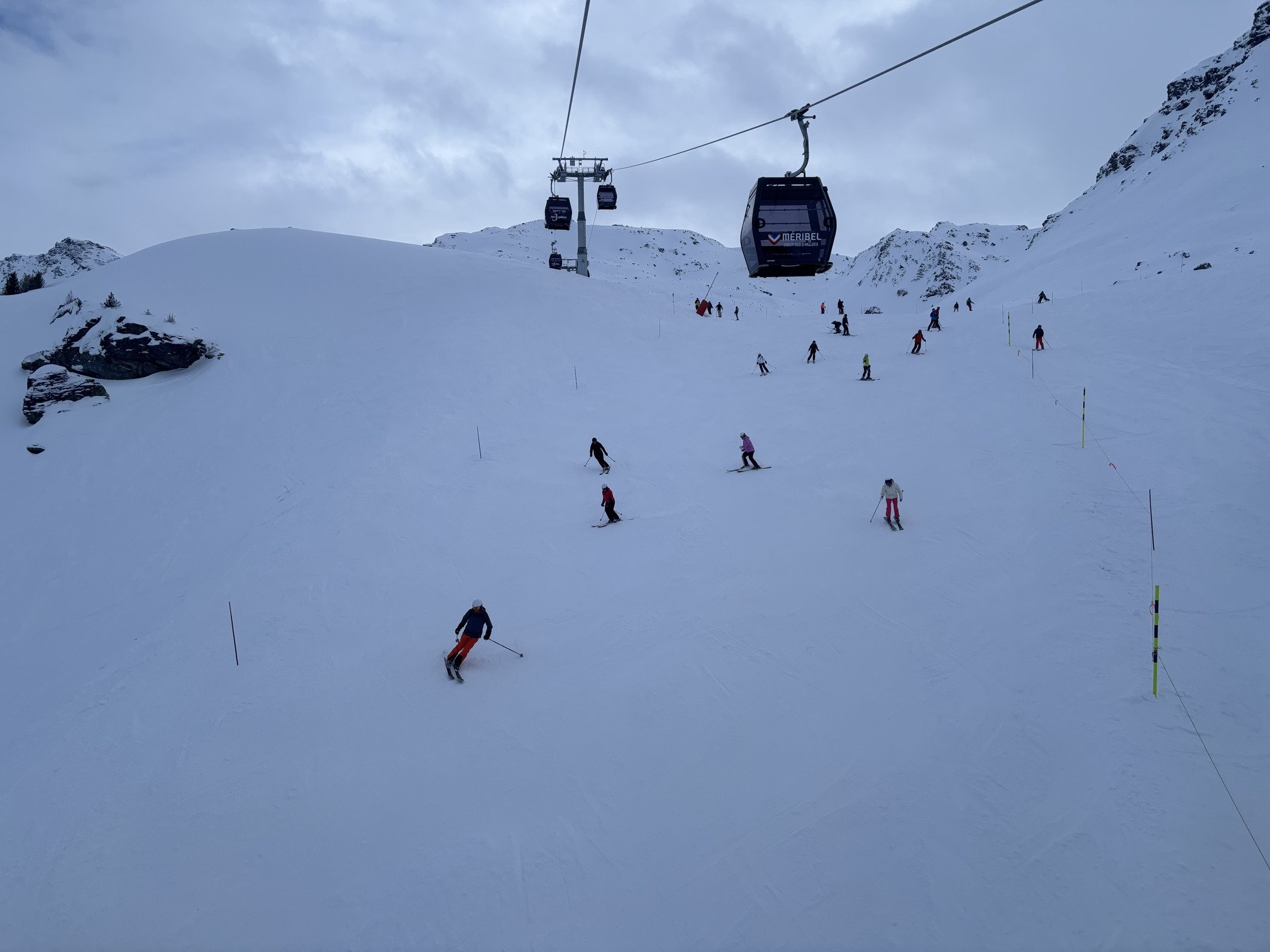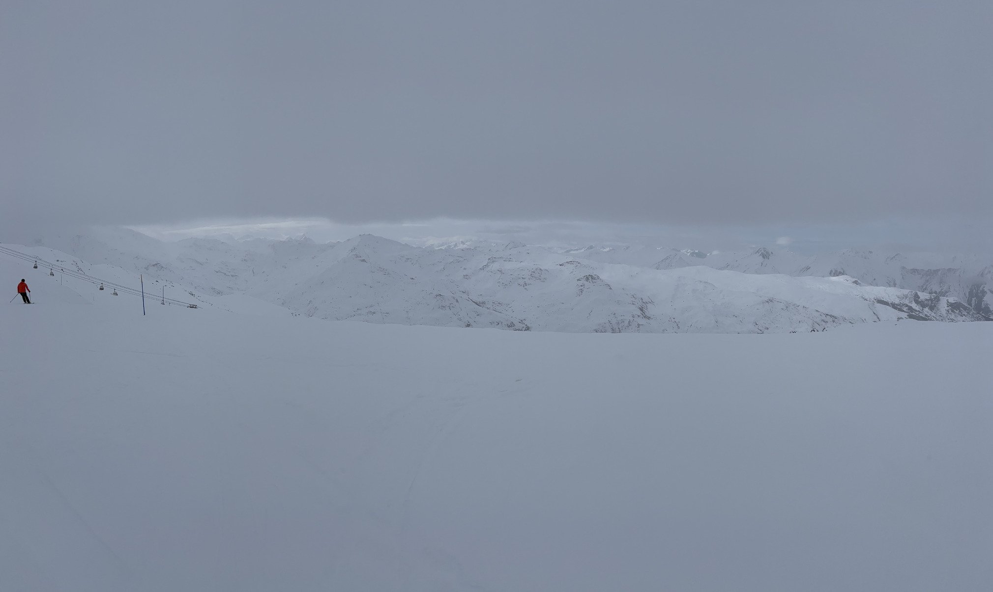 Retour sous ciel qui se ferme à nouveau, là il reneige de façon extensive sur Val Thorens, je reste ce soir, on ne sait jamais…