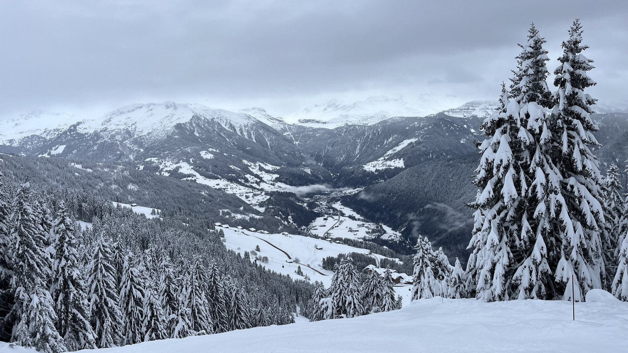 💬 Je profite d'une semaine de mon fils et neveu à l'ESF des Saisies pour y monter car après-tout ça pourrait bien être super adapté aujourd'hui. Bingo 🤩 Mon beau-frère a skié pour la dernière fois au Canada il y a 10 ans, il n'a pas été déçu du paysage ce matin...