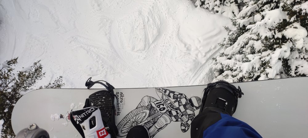Coup de bol, j'ai réussi à ne pas déchausser sur tout le chemin qui revient sur le tsd Aigle (en pompant à mort dans les creux des bosses qui se sont formées sur tout le chemin.. Un peu technique en snow si on veut garder de la vitesse sans se mettre au tas ou se retrouver arrêté au moindre replat.. En goofy ça passe bien, en régular, ça doit être un peu plus pénible).