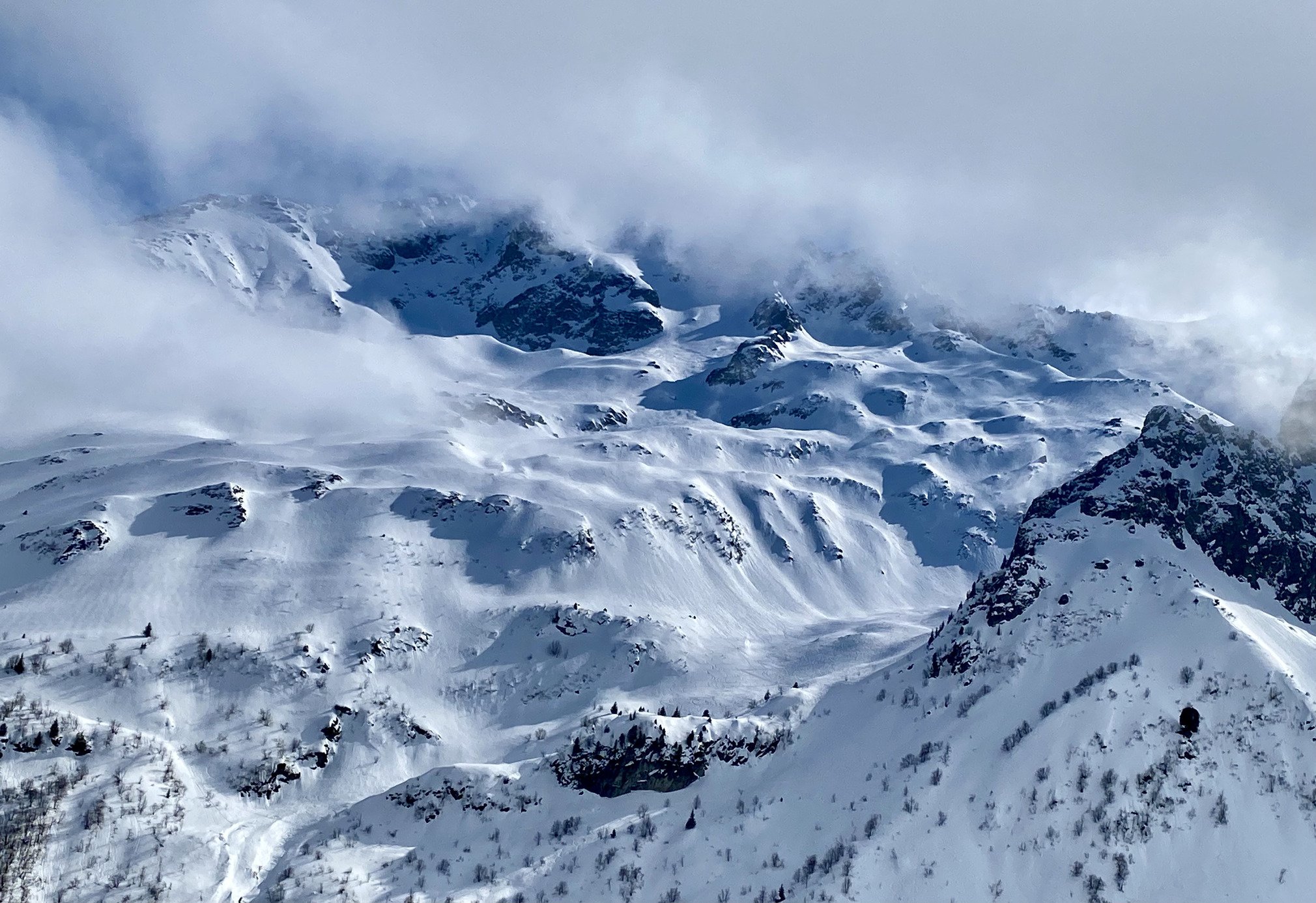 Bascule vers le versant Pleynet pour éviter les nébulosités qui remontent jusqu’au sommet de l’eterlou… Bonne pioche les pistes sont vraiment bonnes à skier et l'affluence de glisseurs négligeable !