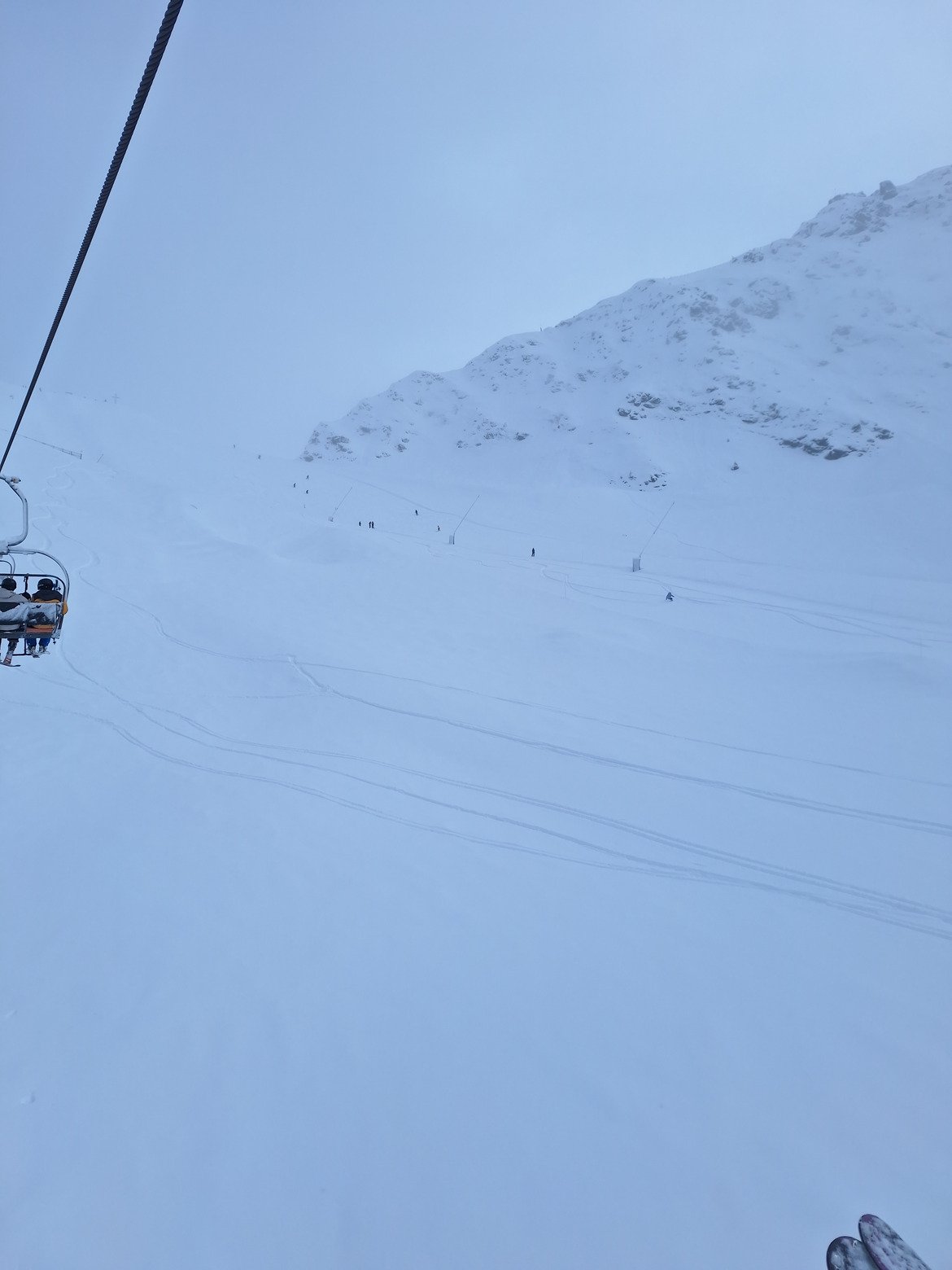 Les liaisons tardent à ouvrir, j'ai le temps de faire 4 rotations et de constater que je ne suis pas tout seul à tracer le secteur, il faut déjà s'éloigner un peu pour continuer à profiter de cette poudreuse.