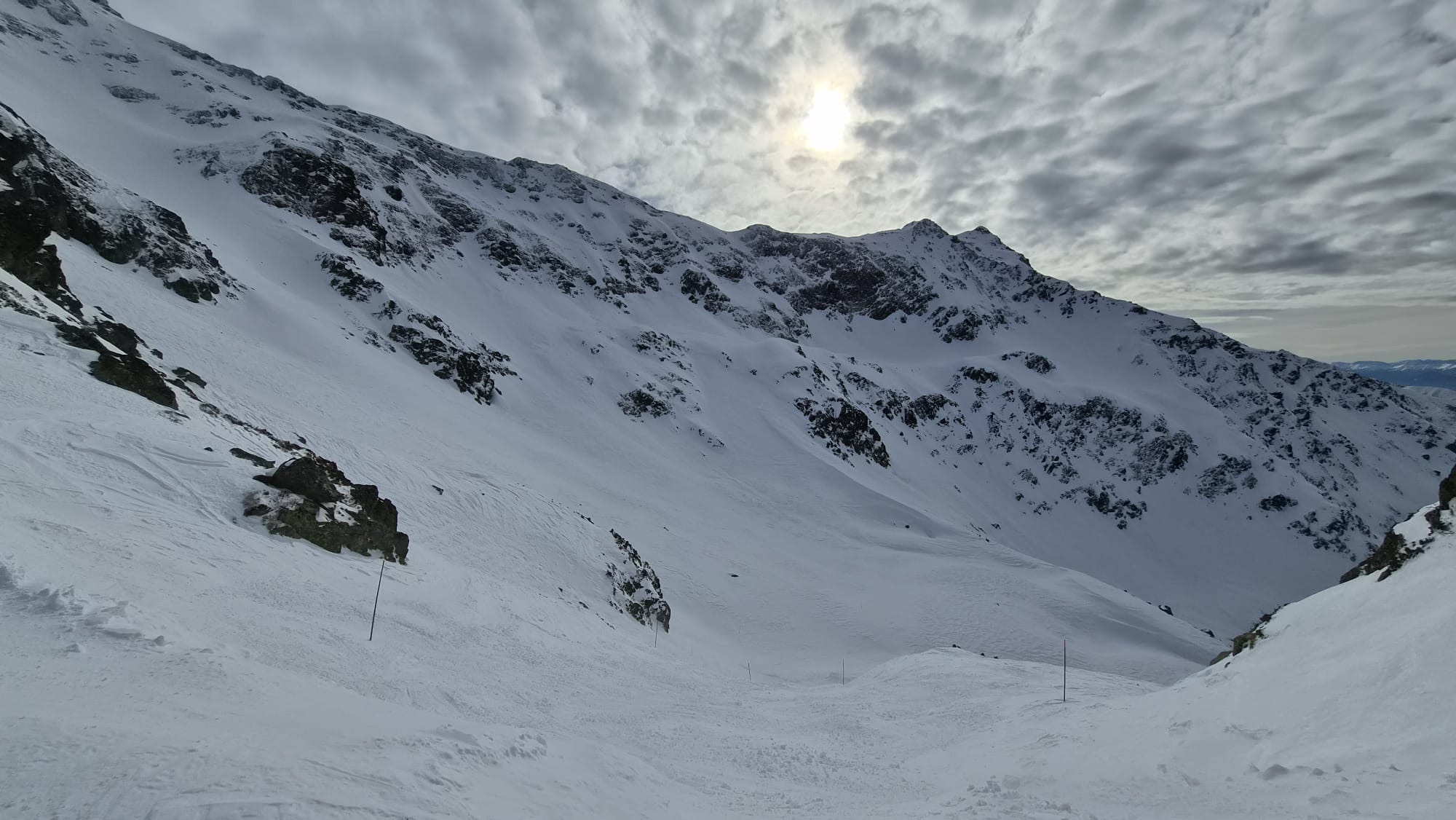 Petit tour sur le gypaete, tout est surtracé, les bosses de partout, les plaques sur toutes les faces interessantes, de toute façon on est en mode ski tranquille aujourd'hui. Enfin ça mort bien quand même la haut du coup belles courbes.