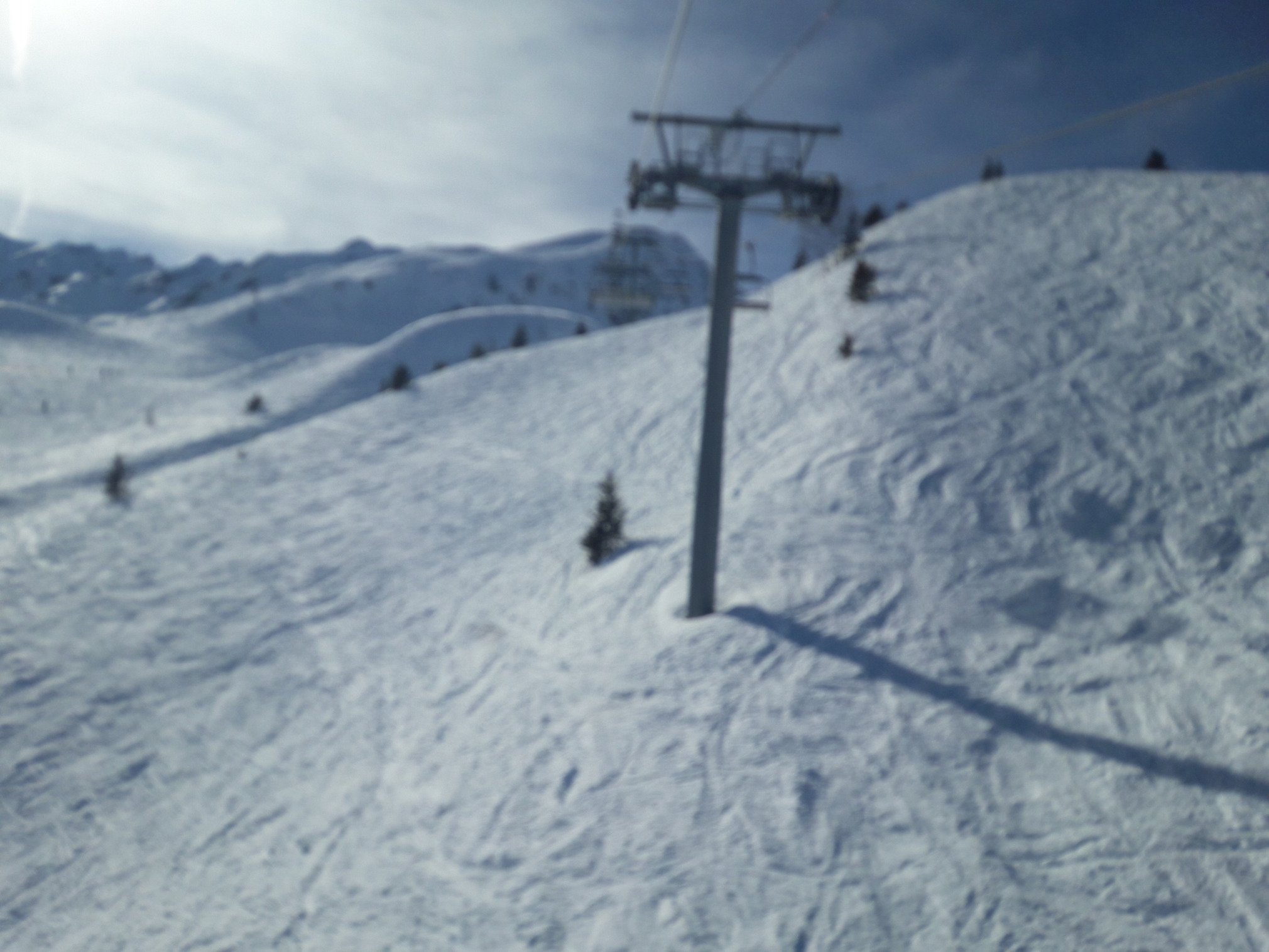 Ski très différents plus tasse et grumeleux. De la grosse bosse bien molle comme j aime et des pistes étonnamment bonnes. Hors pistes praticable en face nord après decaillage uniquement .... attention aux pentes sud qui collent et peuvent emporter un genou. Désserrez l éjection! Le portail des vallons a enfin disparu et le chemin est dame.