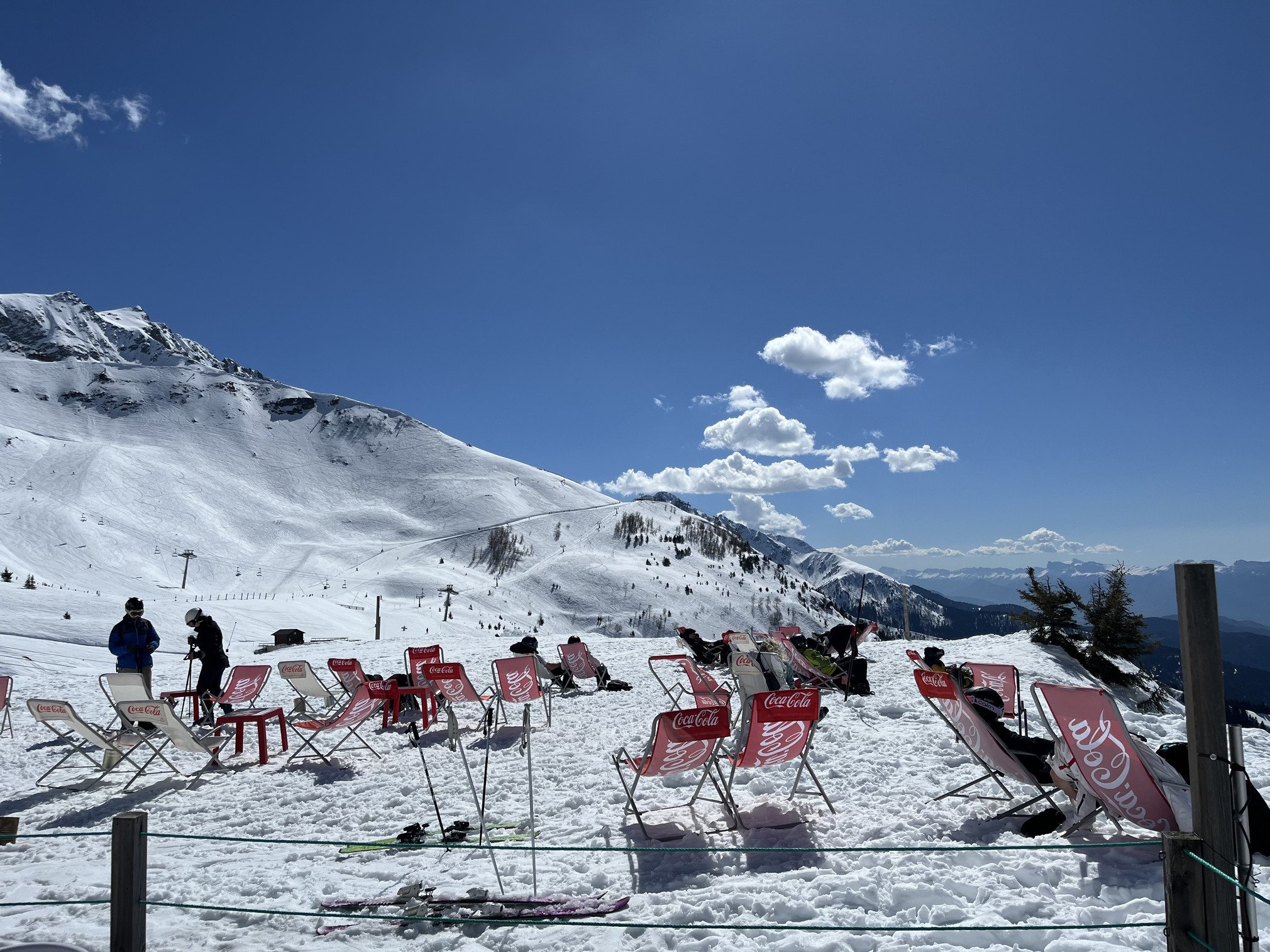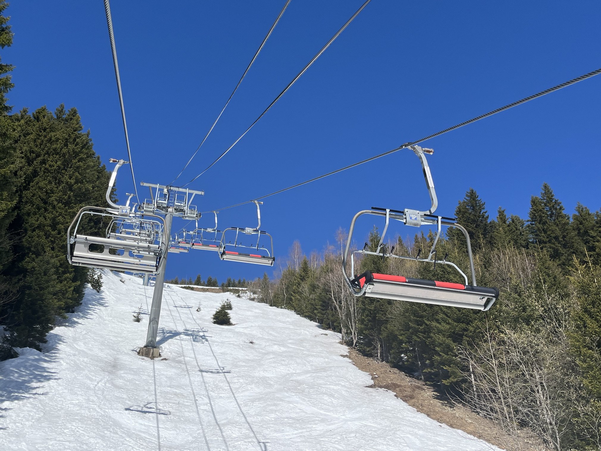 En bas du Pleynet sur les coups à 11h c’est déjà vraiment soupe, et ça ressemble vraiment au printemps / été mais bon il y avait un passage de luge rail offert avec chaque forfait aujourd’hui alors il fallait s’y arrêter !