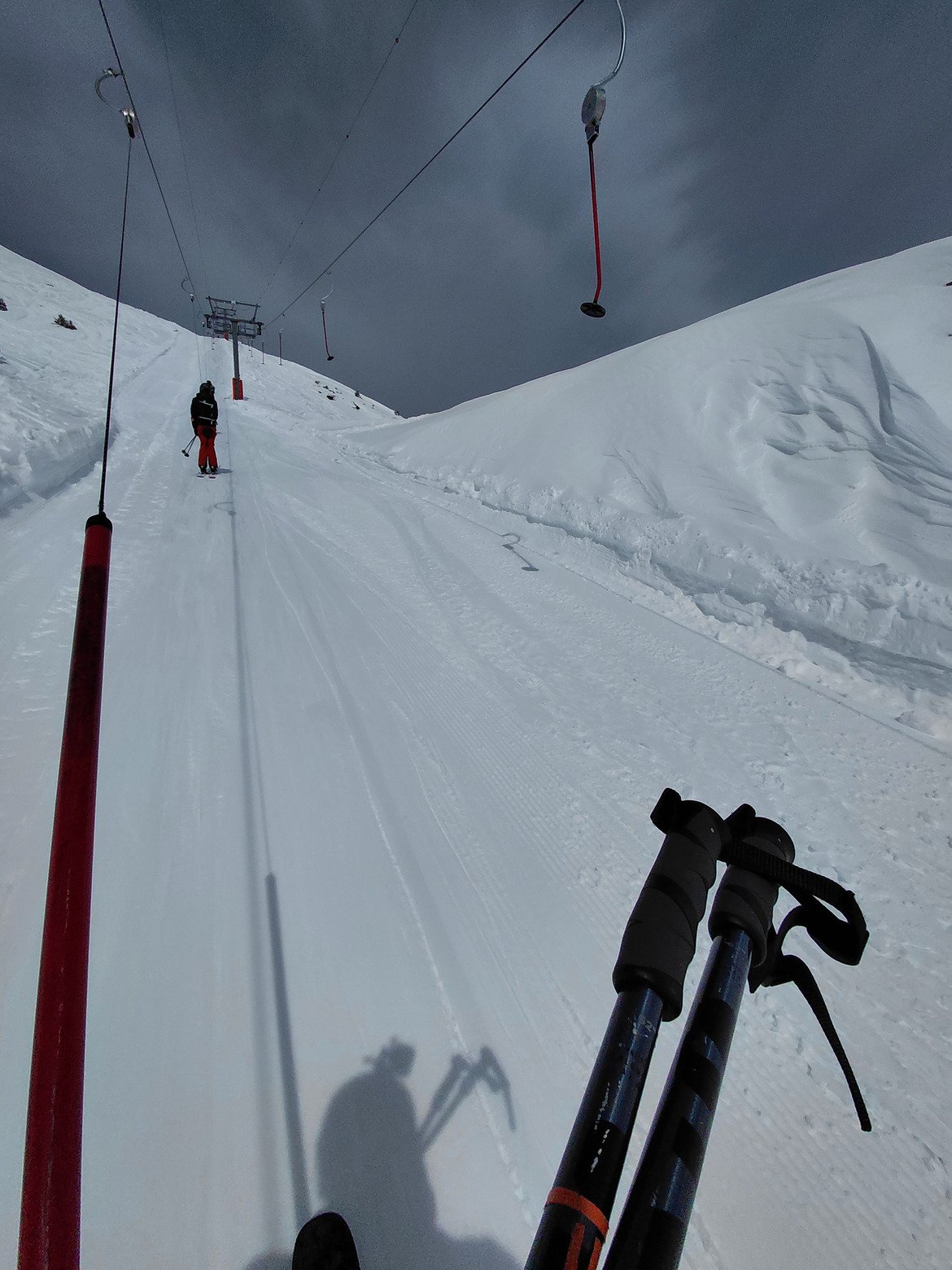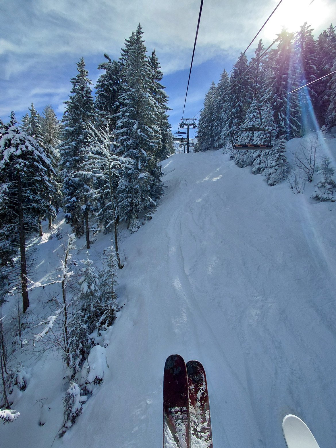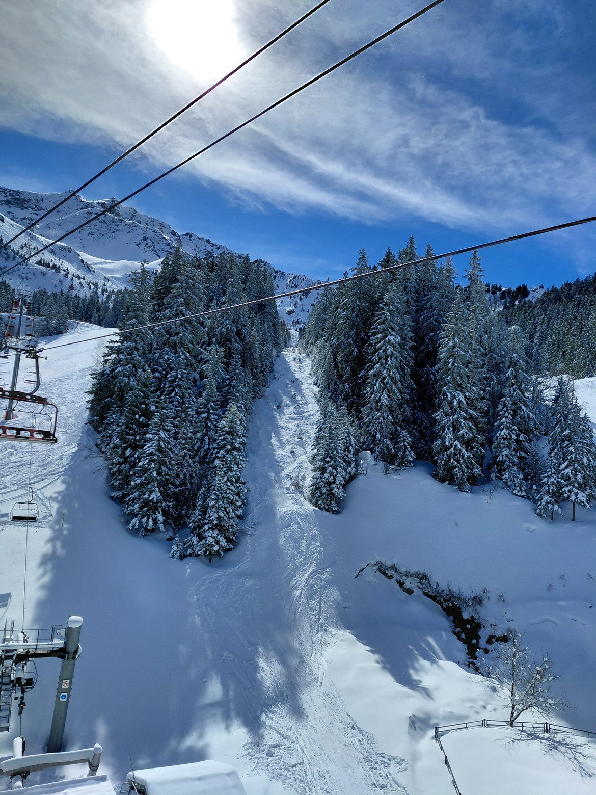 11h30 : On essaie une descente sous le TS chamois Bien tracé, ça sluff beaucoup dans les portions vierges mais ça reste sympa. @in_raclette_we_trust a trouvé un gant blanc et rose ! Si c’est le vôtre, il est maintenant en haut du TS chamois, à la cabane des pisteurs.