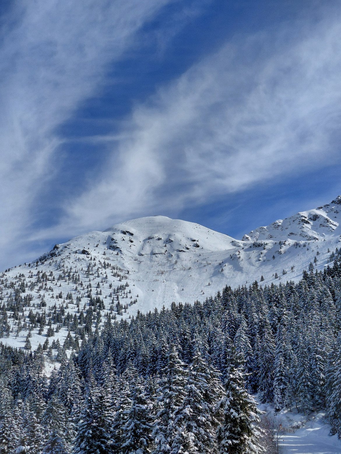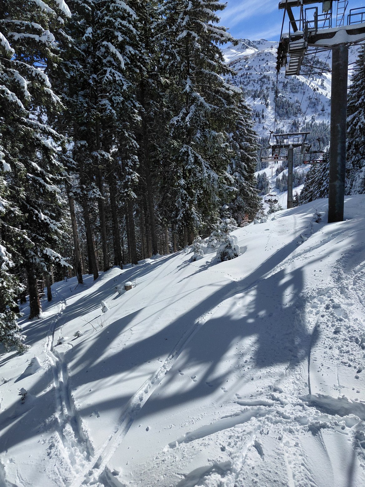 10h45 : direction Rodhos. Une belle quantité de neige ! On fonce dans la peuf en slalomant entre les sapin, bref c'est le bonheur !