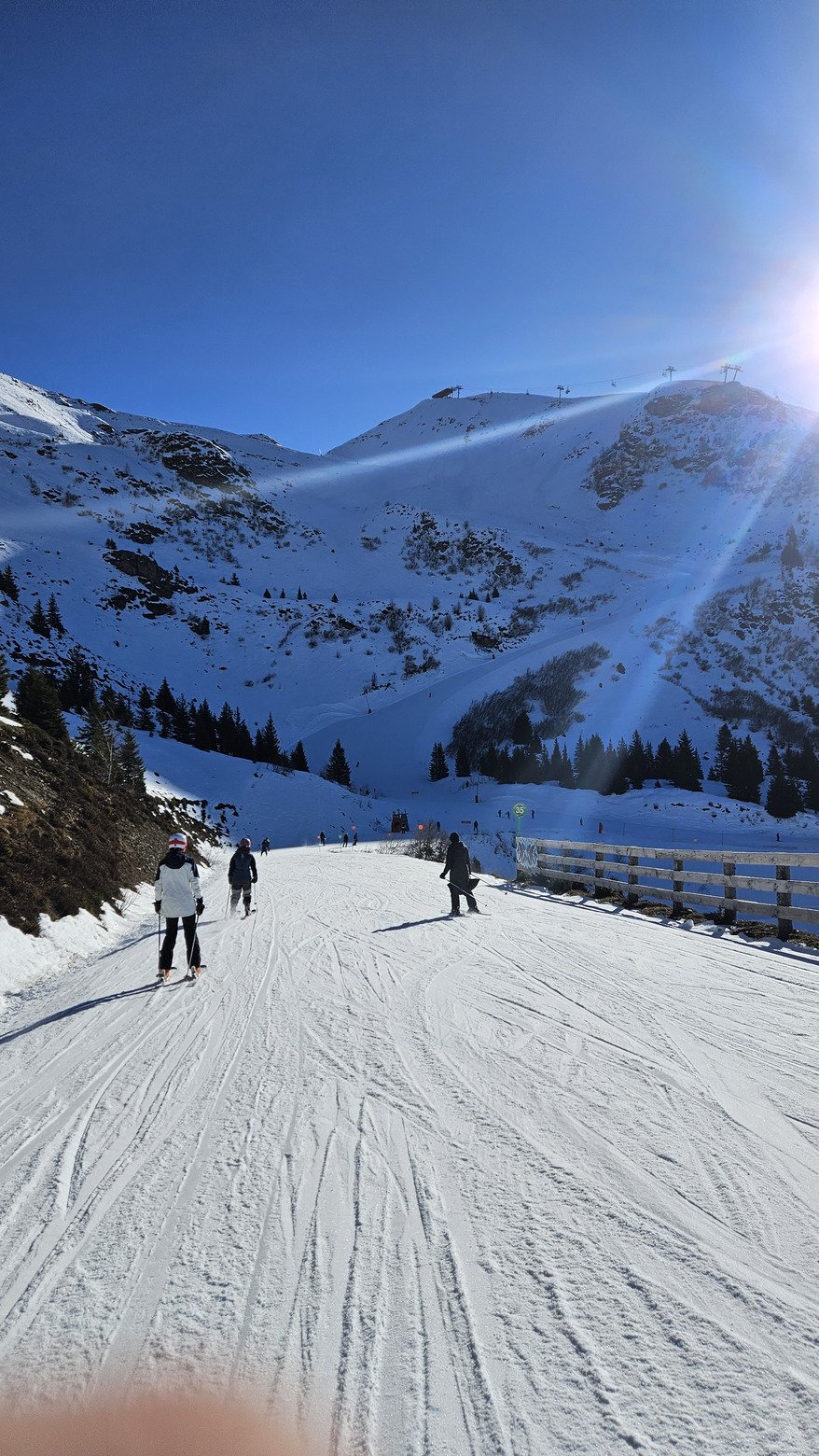Un petit tour sur pleney ou les pistes sont bonnes, bon faut des carres pour carver (pas notre cas) mais sinon c'est agréable. Retour sur gypaete par la verte il y a de la neige, face au soleil c'est beau. Gypaète par contre cest pas fou, y'a des pierres un coup a y laisser des carres.