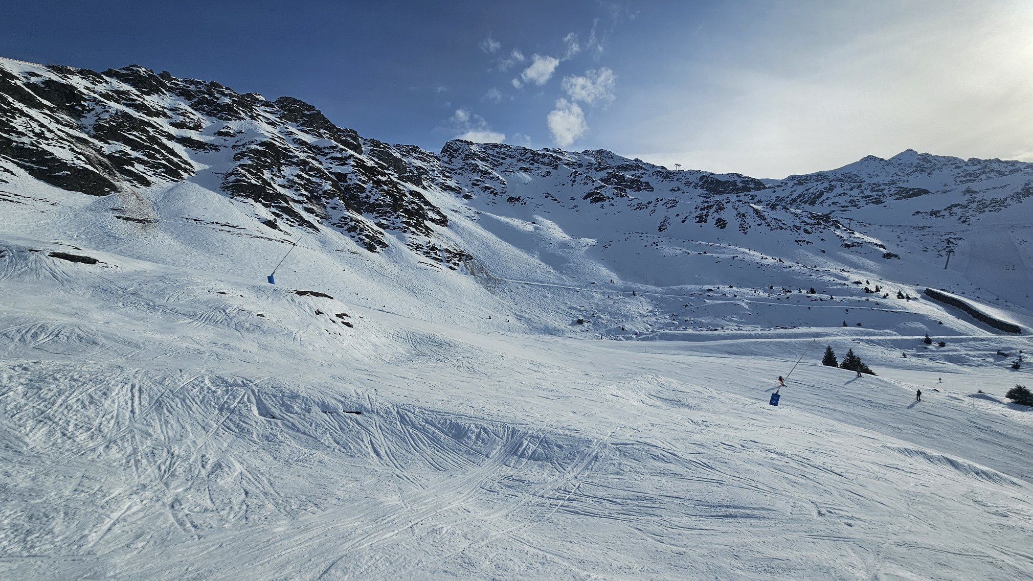 Du coup je part skier une petite heure pendant que ca mange et se balade avec maman. Sauf que comme j'avais prévu ski avec lui jai mes tout mou sans carres. Ô joie dès quon est pas sur l'eterlou. Tout est béton armé voir glacé. Ce fut donc un retour aux bases de la dérive et du travers maîtrisé.