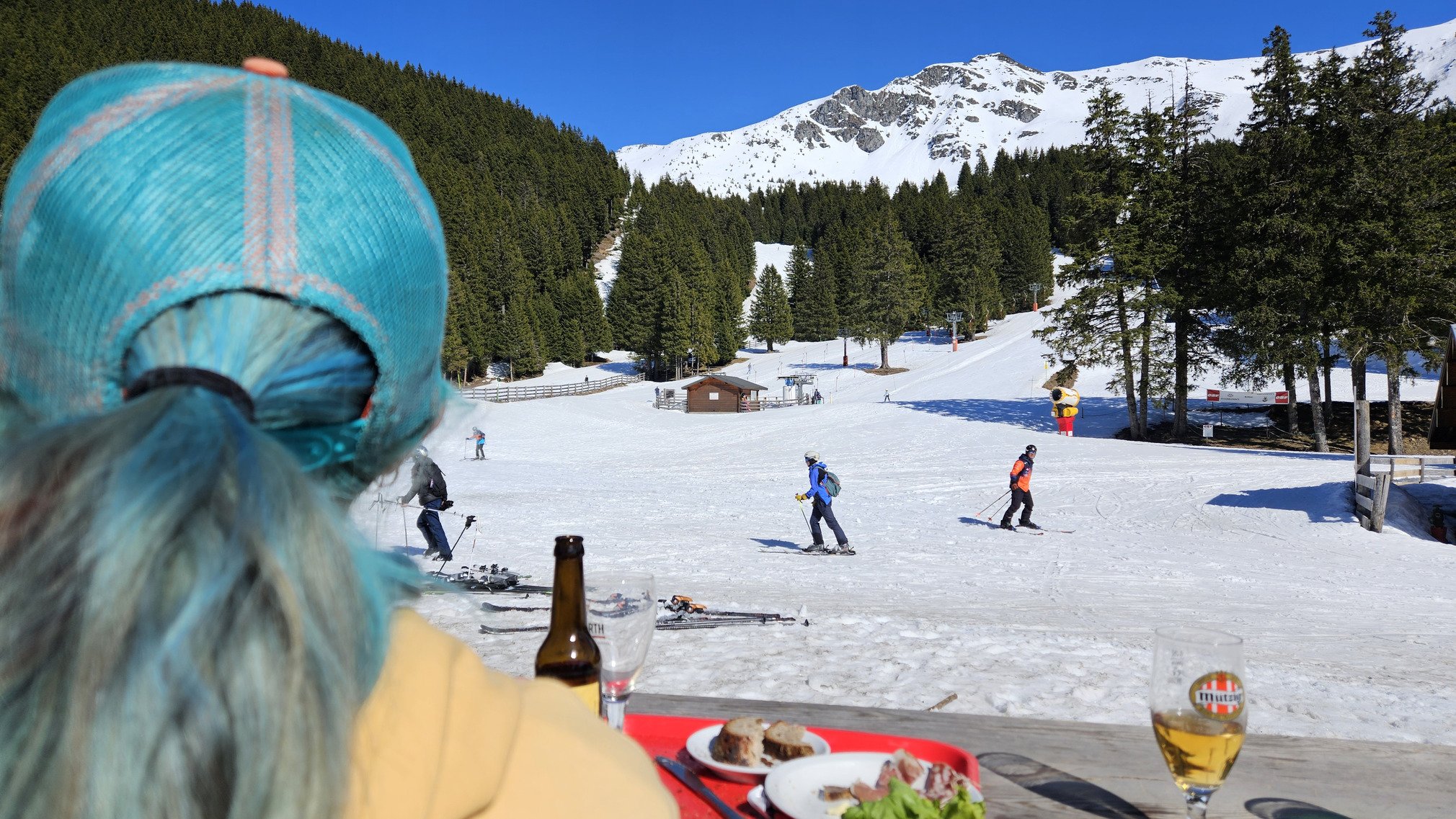 Et voilà c'est fermé. Bon pas de ski pour nous en cette dernière journée, c'était igloo, mais bon on est quand meme venu faire coucou en bas des piste et boire un dernier coup au farinaud. On voit bien la neige douce et meme pas tant travaillé sur les pistes, ca devait être bien bon.