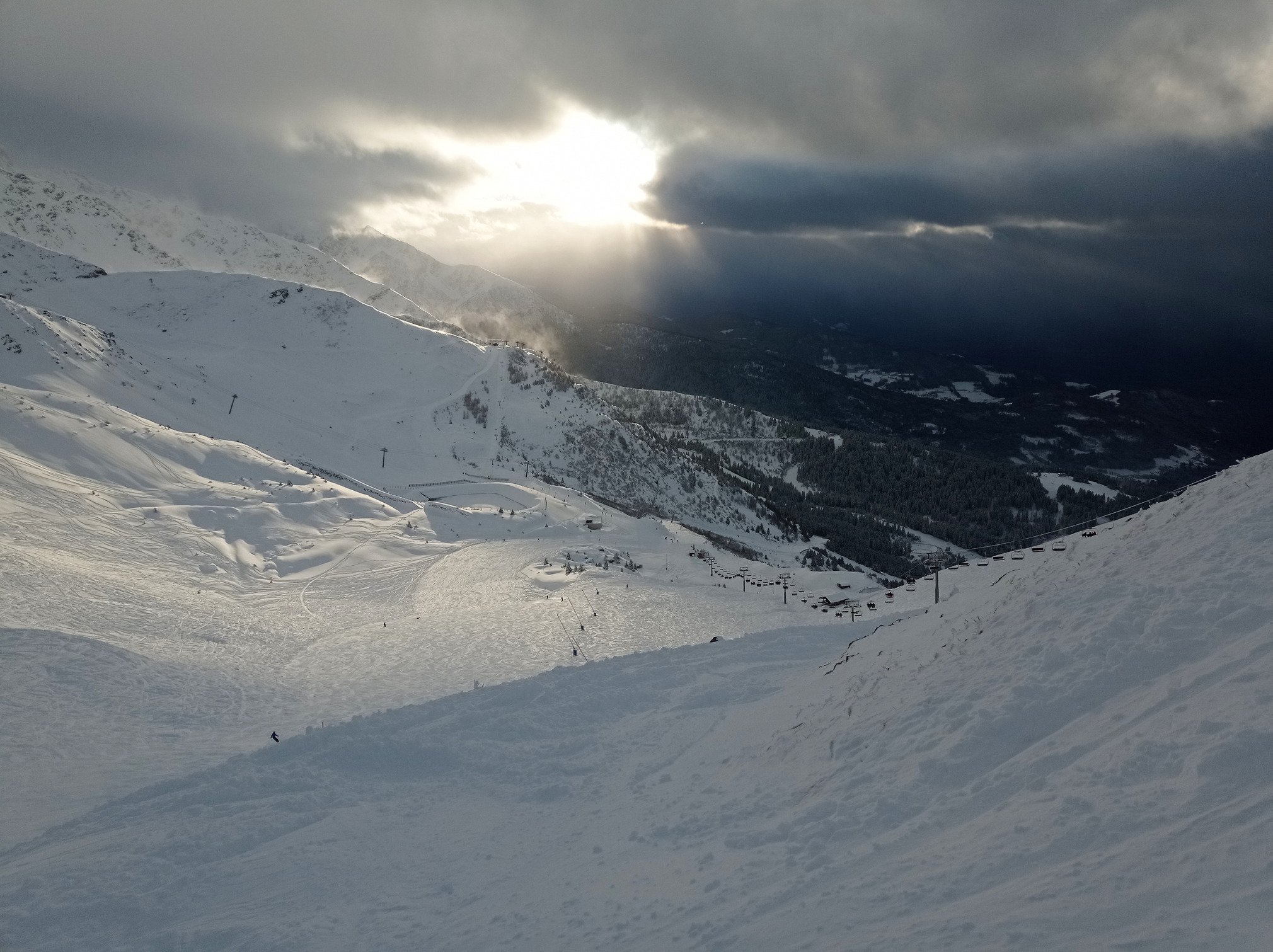 Venons en au coeur du sujet : qu'est-ce que ça faisait du bien ! Après plus d'un mois de disette, Dame Nature nous gâte de près d'un mètre de neige fraîche et ça faisait longtemps que j'avais pas skié d'aussi bonne neige. Très froide, sèche, légère et ô combien agréable à skier après un mois à skier sur du carrelage.