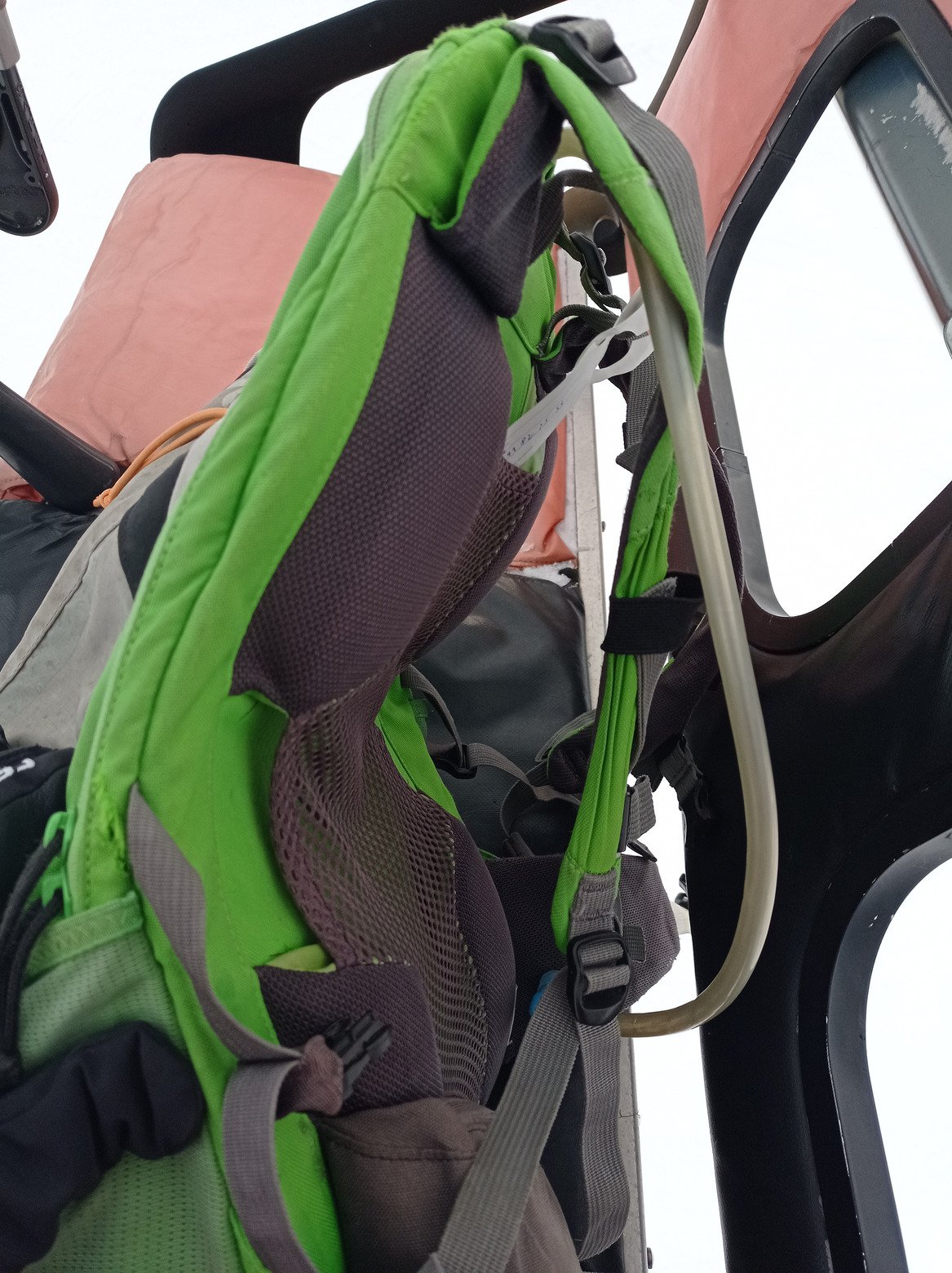 Petit bémol dans cette journée parfaite : une énorme chute sous le télésiège Aigle. Les skis se sont plantés, je suis parti en salto avant et j'ai senti ma colonne vertébrale craquer comme un vieil escalier, j'ai réussi à plier l'armature métallique de mon sac à dos (cf photo). Après un passage au cabinet médical, je suis passé me trouver une dorsale :)