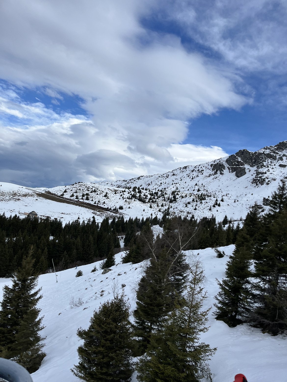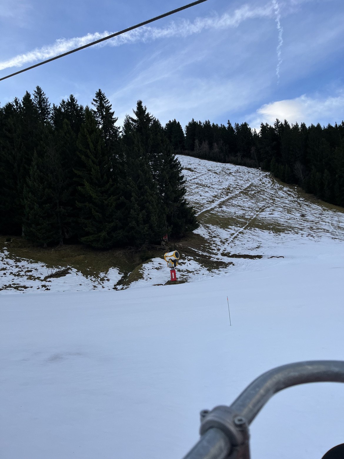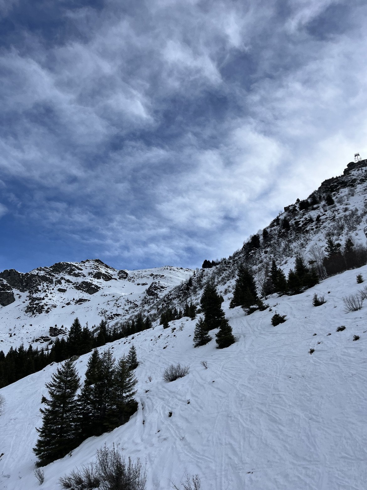 Vers midi, les pistes se transforment en patinoire. On croise plus de monde, pas mal de personnes descendent sur les fesses ou en étant déchaussées. Une vrai bizarrerie.