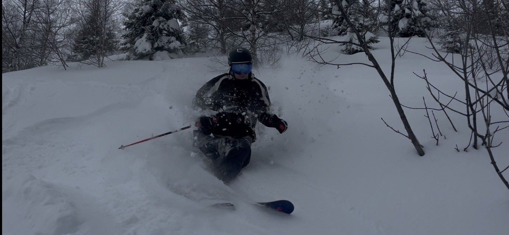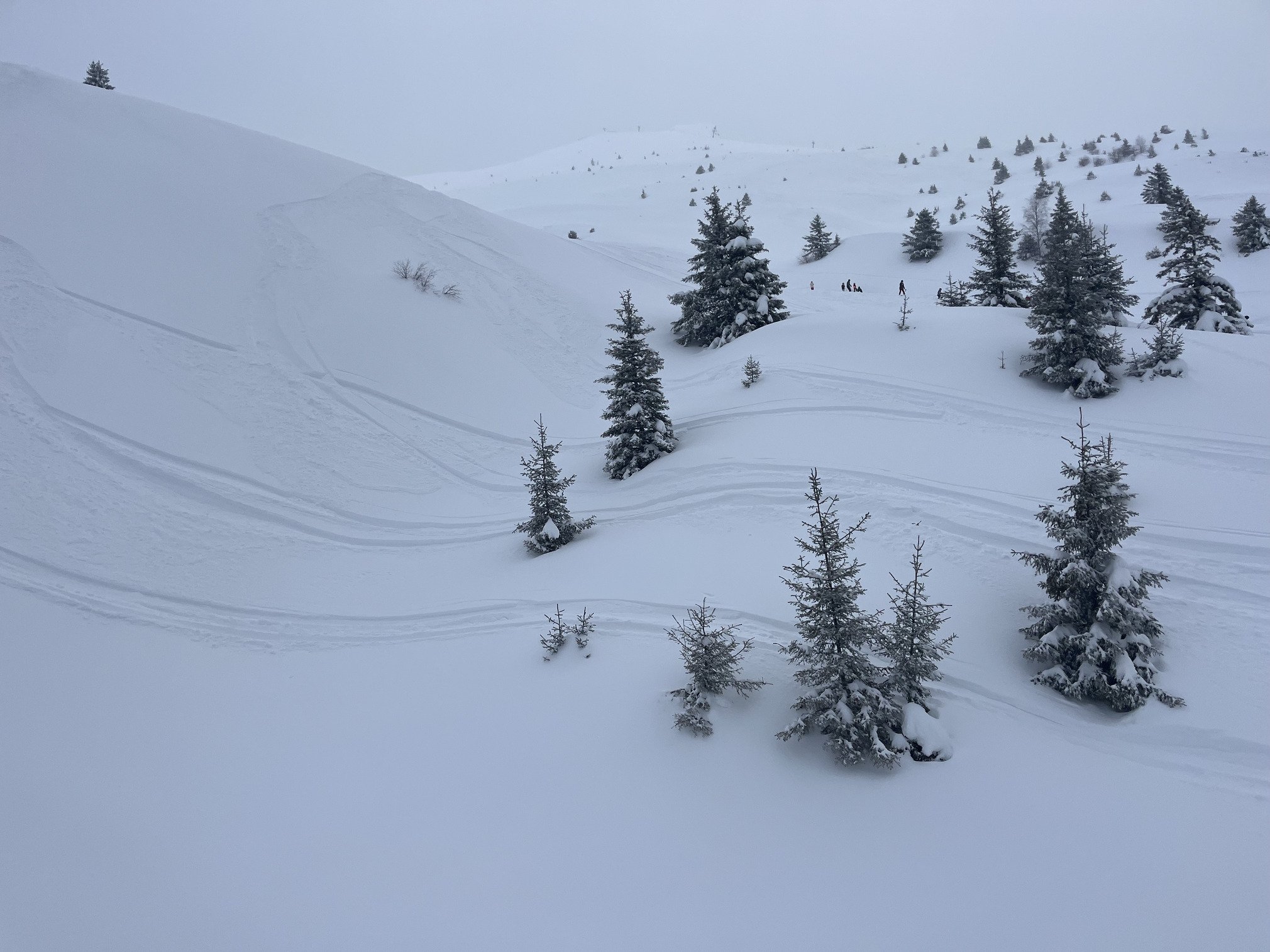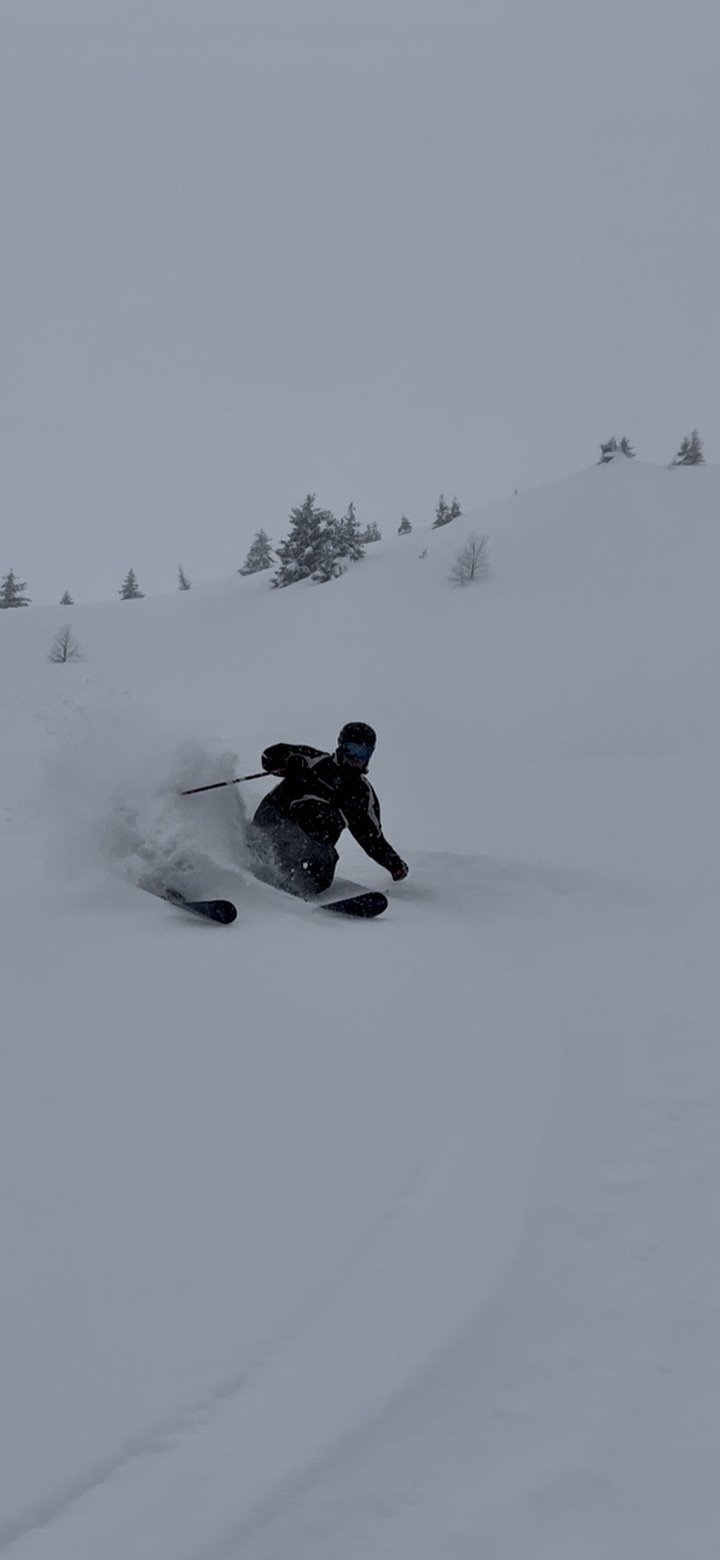 Le temps est neigeux, quelques nuages, mais on arrive à faire les runs avec une visibilité pas trop mal.