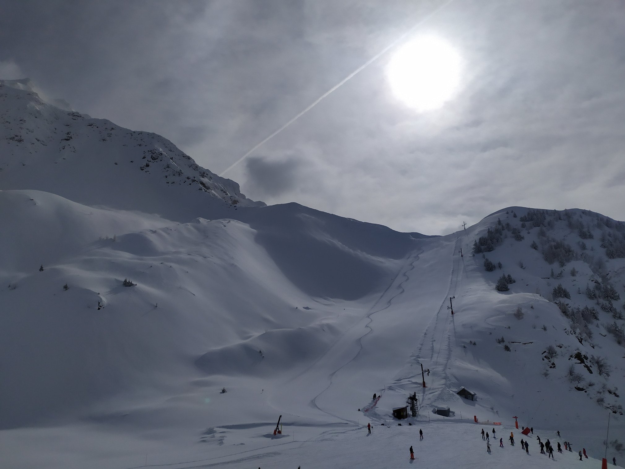-frequentation : aussi monstrueuse qu une semaine de vacances scolaire le permet. ça marche sur les skis dans la queue de bouquetin, puis ça sera +fluide sur chamois et TS des lacs qui ouvrent. pipay n'ouvrira pas.