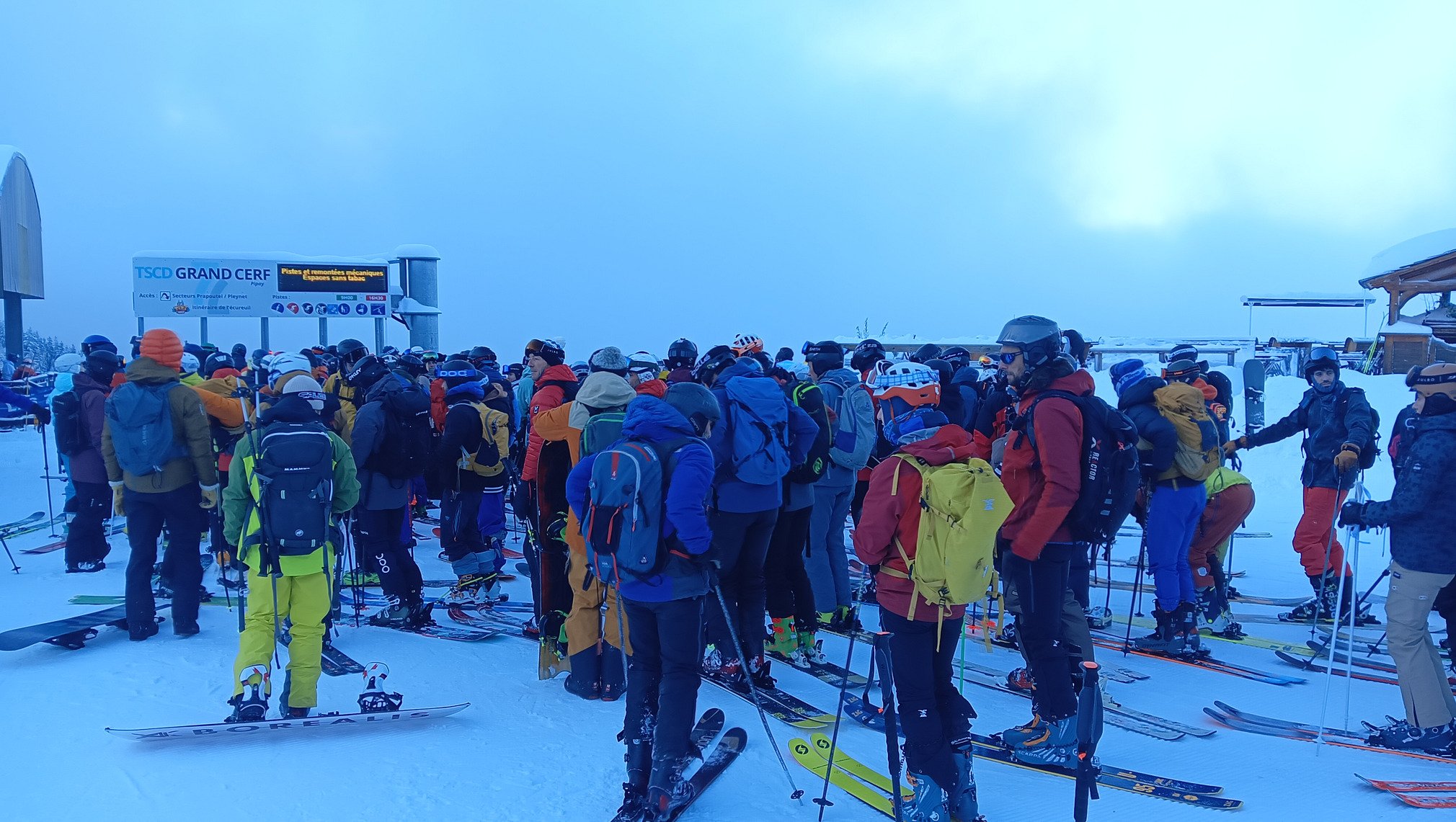 Sur place vers 9h, c'est à dire 9h20 sur les skis... Sauf que ça n'a ouvert qu'une heure plus tard. Le temps de bien faire les check DVA et de saluer les quelques têtes que je reconnais. Au final avec tous les skieurs du jour ça fait une belle foule mais rien d'insurmontable, en 15min tout le monte était monté puis assez vite la foule a réduit avec pas mal de freerando qui s'éloignaient longtemps dans les contrepentes.