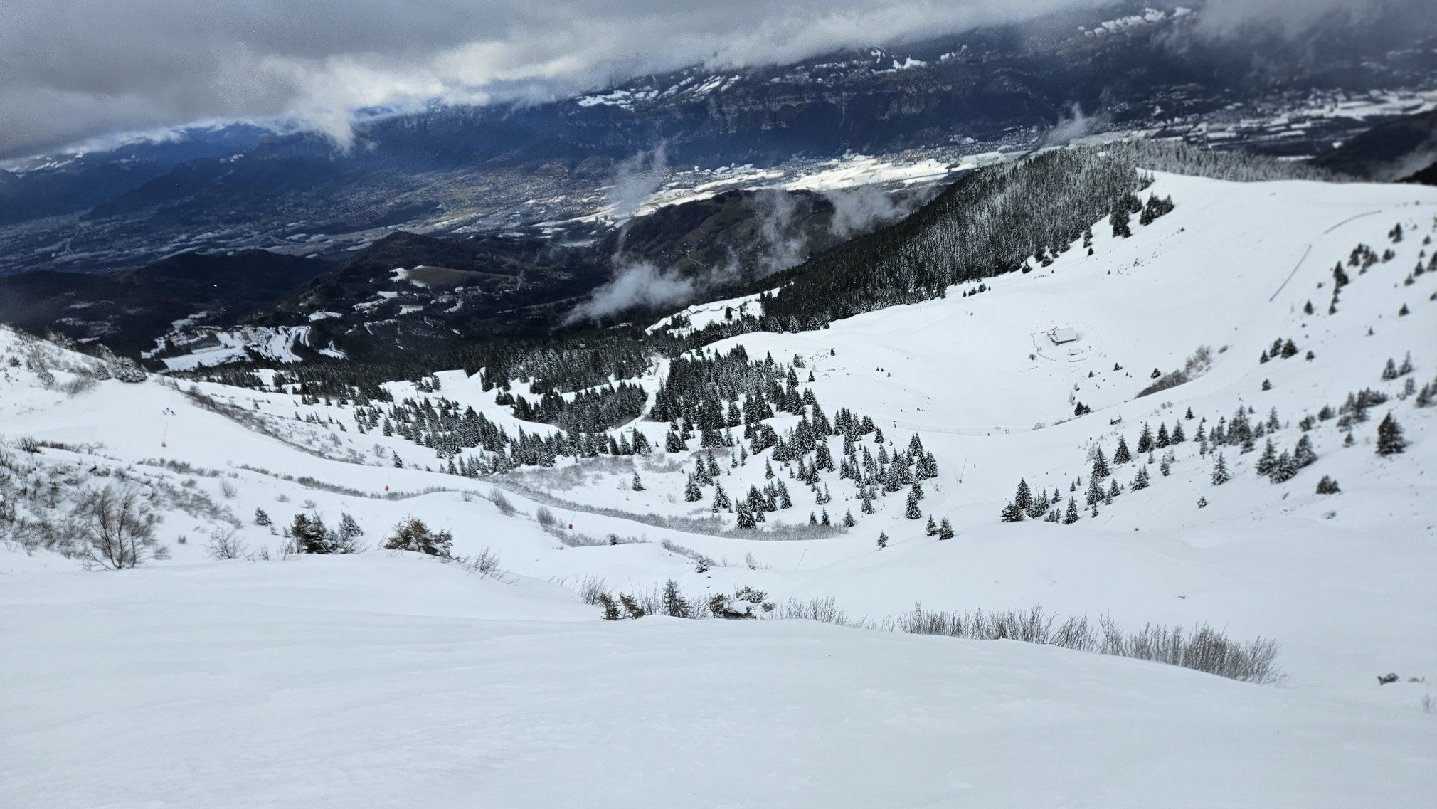 Bon la montée a pipay est engageante (enfin pas pour la voiture, 5cm de neige sur un fond trempé il fallait un peu de talent), mais on voit vite que le vent a fracassé et la pluie est allé haut.