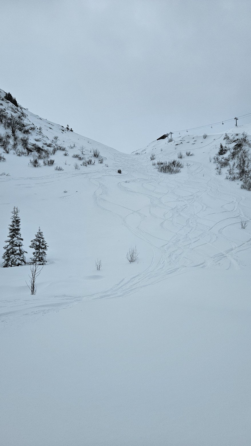 Premiers run côté roche noire, cest bosse de glace et trou de dense. Pas si mal mais ca décape encore. Le bas par contre on trouve localement les 25-30 de profondeur, quelques virages de plaisir.