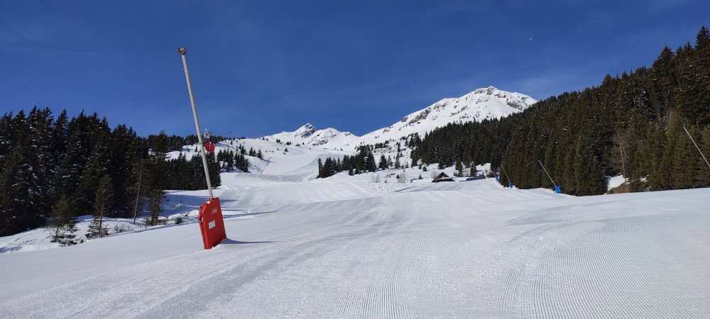 La neige est excellente et j’enchaine 3 rotations avec vraiment peu de monde avant de repasser sur Oursière et remonter sur le haut du Plan du Pra (rha ce mur au départ de l’arrivée du siège est un régal).