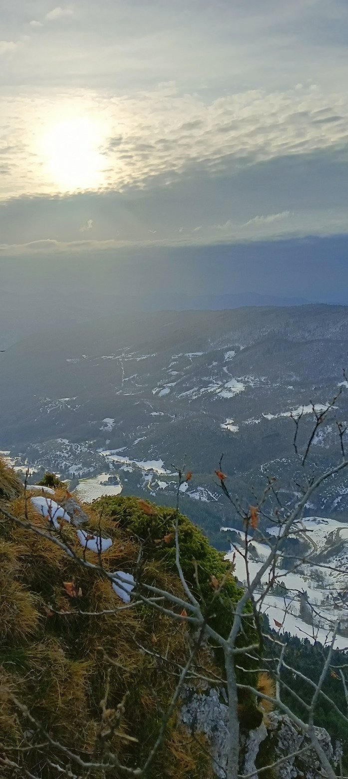 arrivée au sommet un rapide coup d'œil de l'autre cote et Rencurel demeure encore bien enneigé par contre la plaine de Lans est bien verte désormais