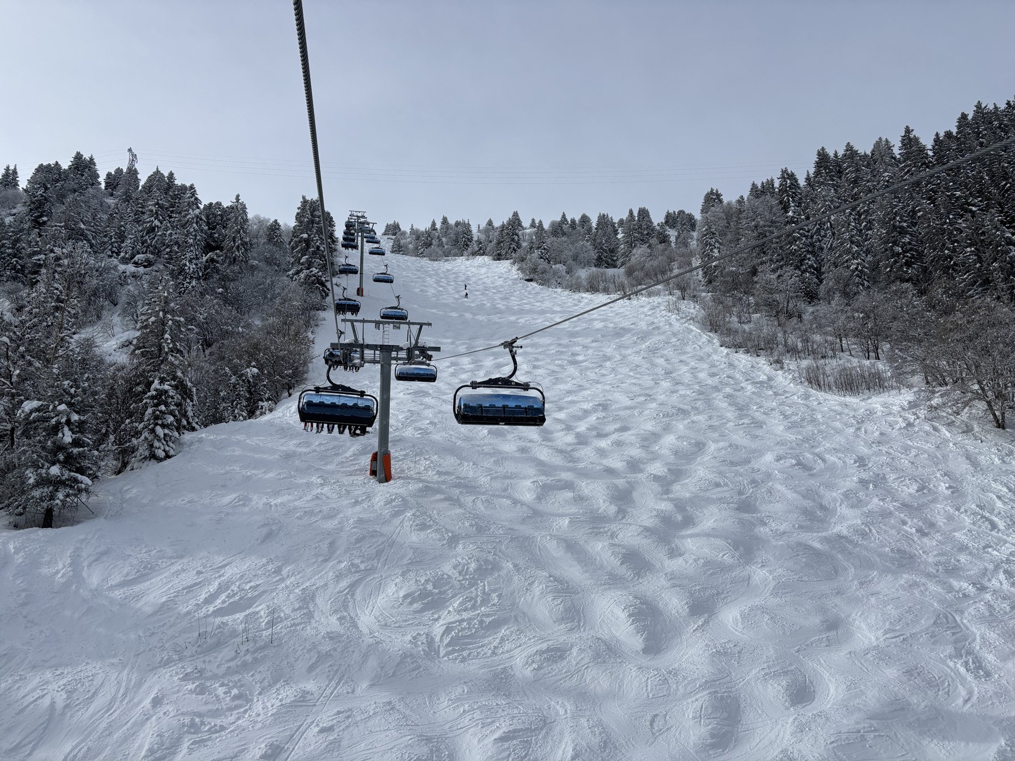 Deux montées au téléski des Teppes dont la piste est bonne, ainsi que la Julie côté Tougne alluétin pour emprunter la secrète Pouillard, qui arrive direct à Tougnète en shuntant Saint Martin 2 forcément blindé: trop de peuple, j’envisage le téléski de l’Arpasson incontournable en cas de foule mais me laisse finalement tenter par la première Lièvre de la saison en très bonnes conditions❄️