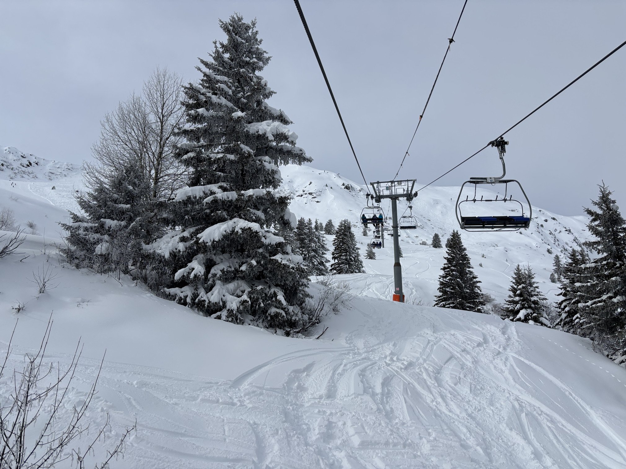 Un peu d’attente au vieil Olympic plus si Express pour une Face incroyable, d’où je remonte faire Roc de Fer et m’extrais du coin par le lentissime téléski des Caves, puisque la jonction Cherferie➡️Tougnète est étonnamment fermée 🔐
