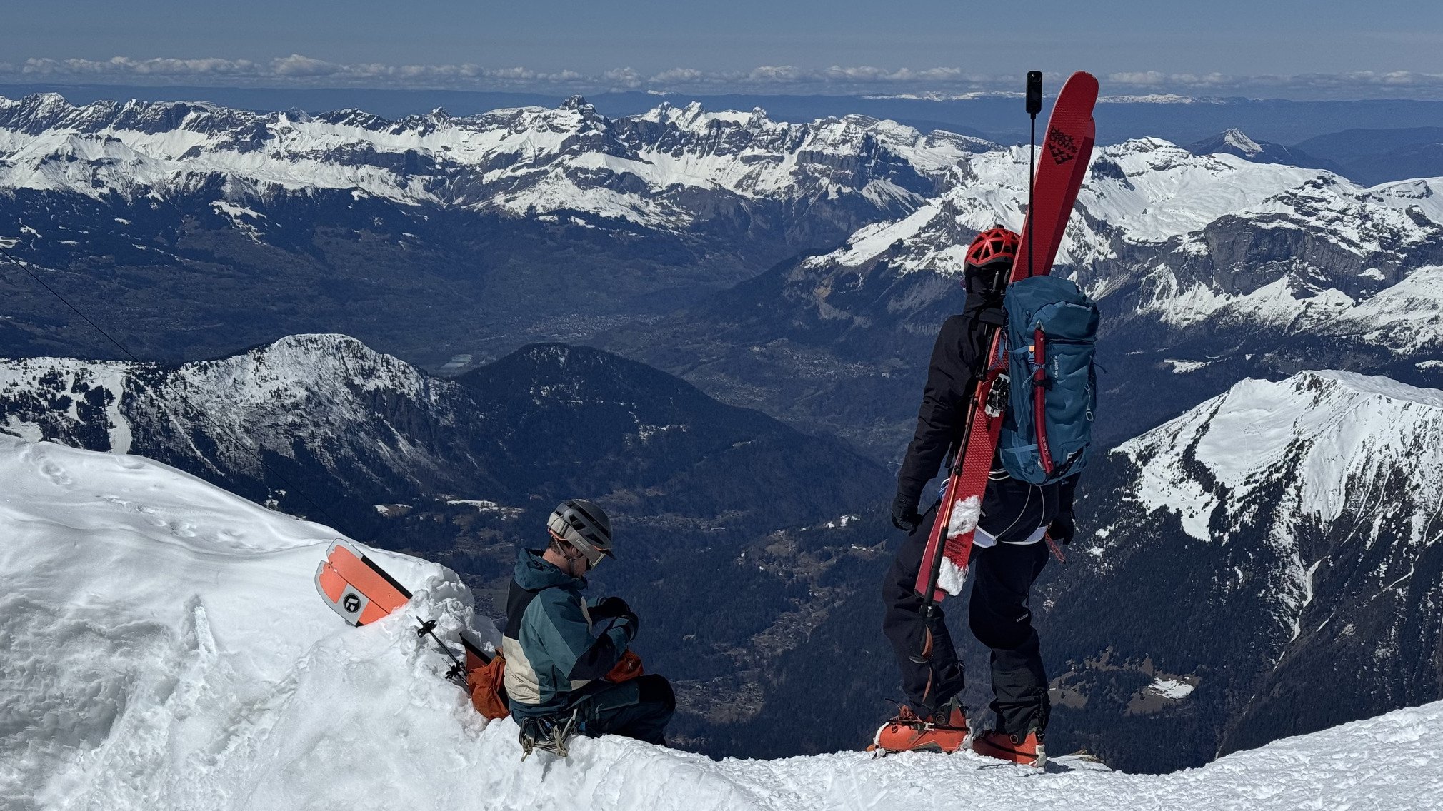 Deuxième retour à l’intermédiaire assez épuisante dans une neige bien transformée et collante. On a hésité à suivre les quelques aventuriers qui sont descendus jusqu’au tunnel mais personne ne connaissant la descente et étant déjà bien asséchés on a jouer la carte de la sécurité. Il faisait très chaud, même en haut à l’ombre !