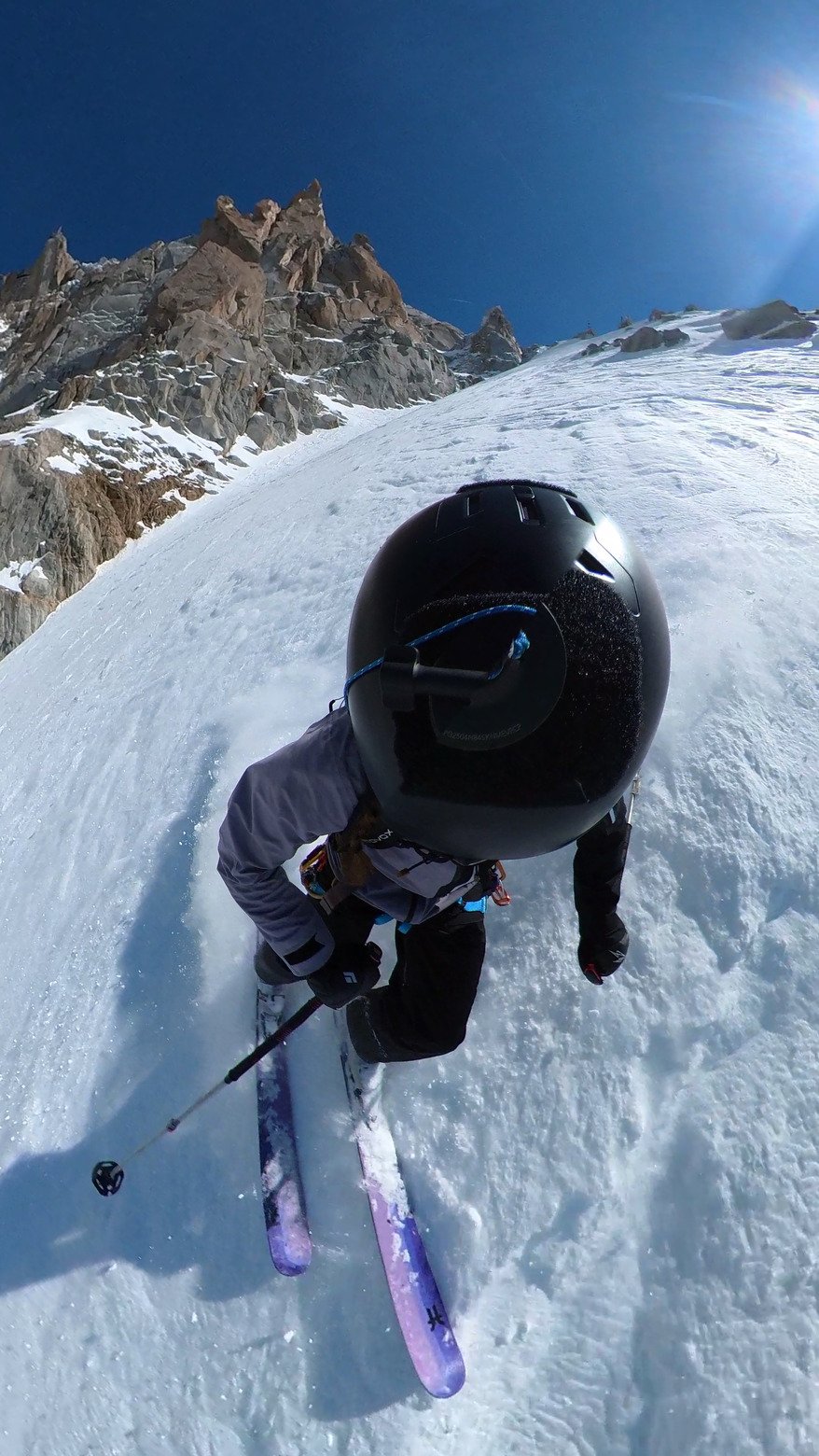 On repart pour un tour avec le deuxième classique du coin: le glacier rond. L’equipe étant à l’aise en crampons on descendre sans rappel la courte d’escalade (5/10m) plein gaz. Pour découvrir se magnifique couloir ! Plus pentu, plus direct et plus long que son voisin le cosmique. La neige était meilleur ici, dur sur la première partie mais relativement lisse et décaillé sur la deuxième partie.