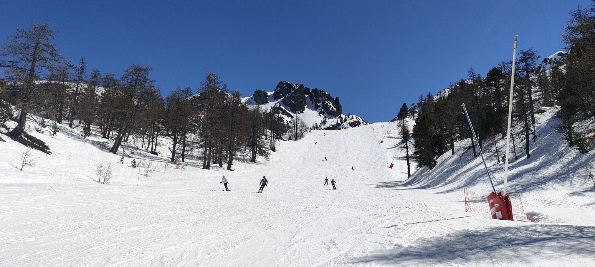 Hormis les cours ESF, pas grand monde sur le domaine, donc ça limite aussi un peu la dégradation de la qualité du ski. Mais malgré tout, mieux vaut viser le créneau 10h-13h pour faire du bon ski.