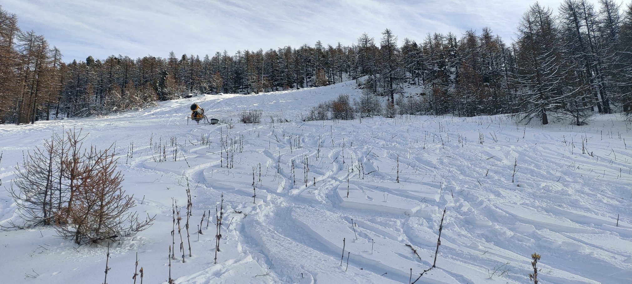Dans ce qui est ouvert, le meilleur ski est sur les rouges des Gondrans car ici pas de canons (et donc moins de glace qui ressort avec les passages).
