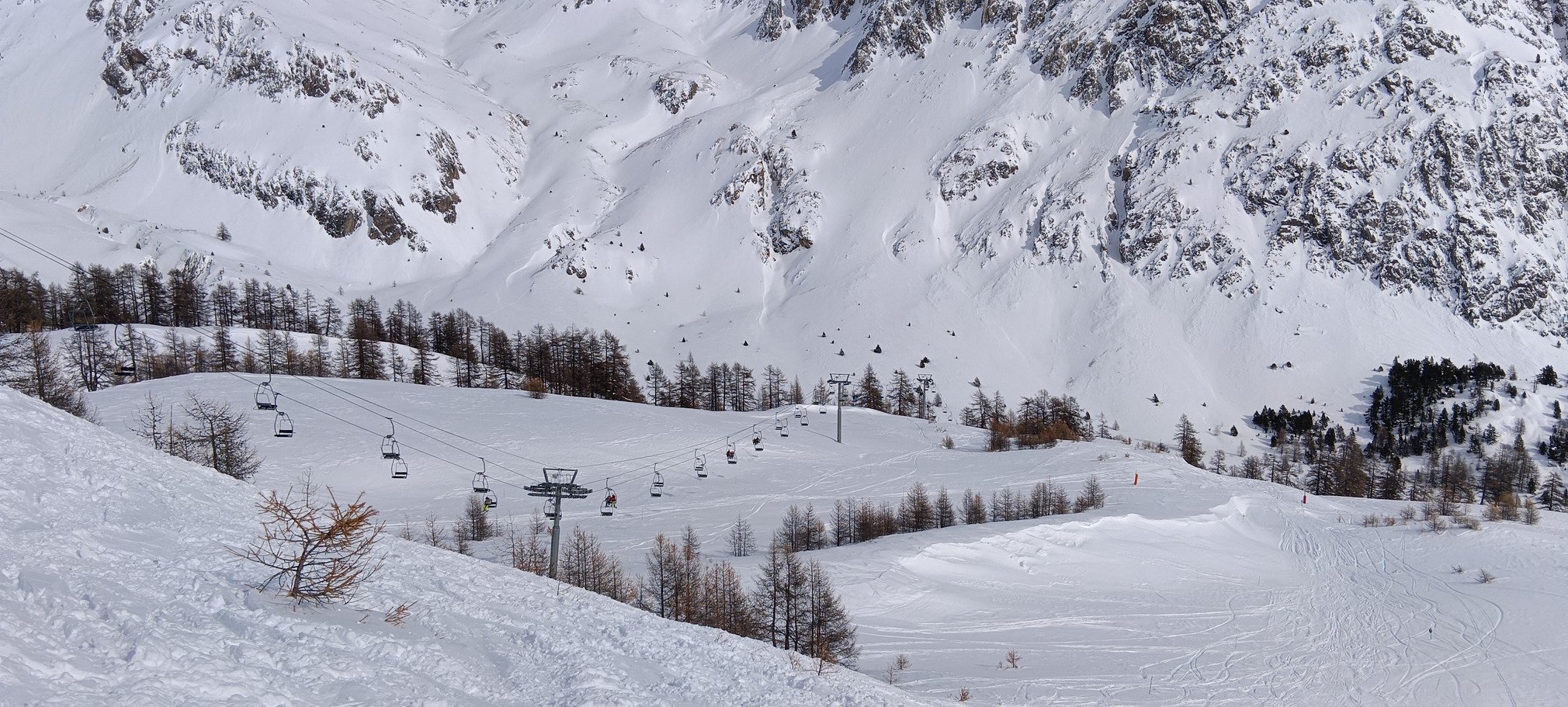 En hors piste, c'était assez hétérogène. Globalement sur le versant Chalvet, le vent a fait du mal. La poudreuse était principalement cartonnée, à quelques exceptions près (comme le petit hors piste sur le tracé de l'ancien TK qui partait de l'emplacement actuel du restaurant Les Terrasses). Par contre, sur l'autre versant, c'est resté excellent (moelleux et froid) dans les bois (sur tout ce qui est accessible avec les TS Tremplin et Brousset en tout cas, pas eu le temps de voir ailleurs). C'est pas mal tracé, mais pas complétement traffolé non plus. Bref, il reste de quoi se faire bien plaisir en cherchant un peu.