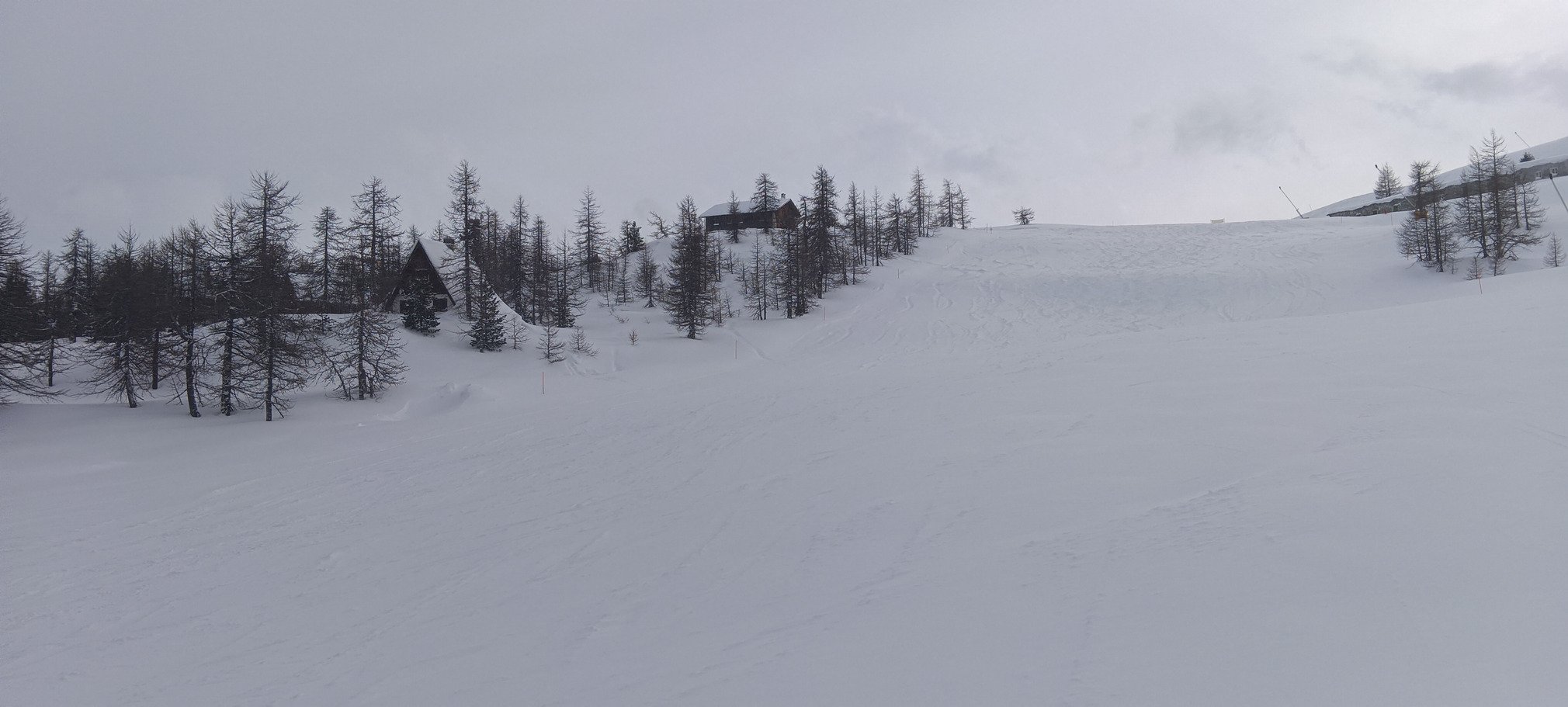 Hormis la première descente sur la piste rouge Combe du Loup - avec visibilité nulle et grosses congères, sans oublier l'interminable montée ventée sur l'antediluvien TS du Chalvet - il n'y avait rien à jeter. Toutes les descentes sur le TS Col Boeuf étaient exquises. Et que dire de celle intégrale du sommet de Serra Granet jusqu'à Cesana ! Aucune question à se poser, tous les troncs d'arbres, souches et gros cailloux sont recouverts, c'est juste parfait.