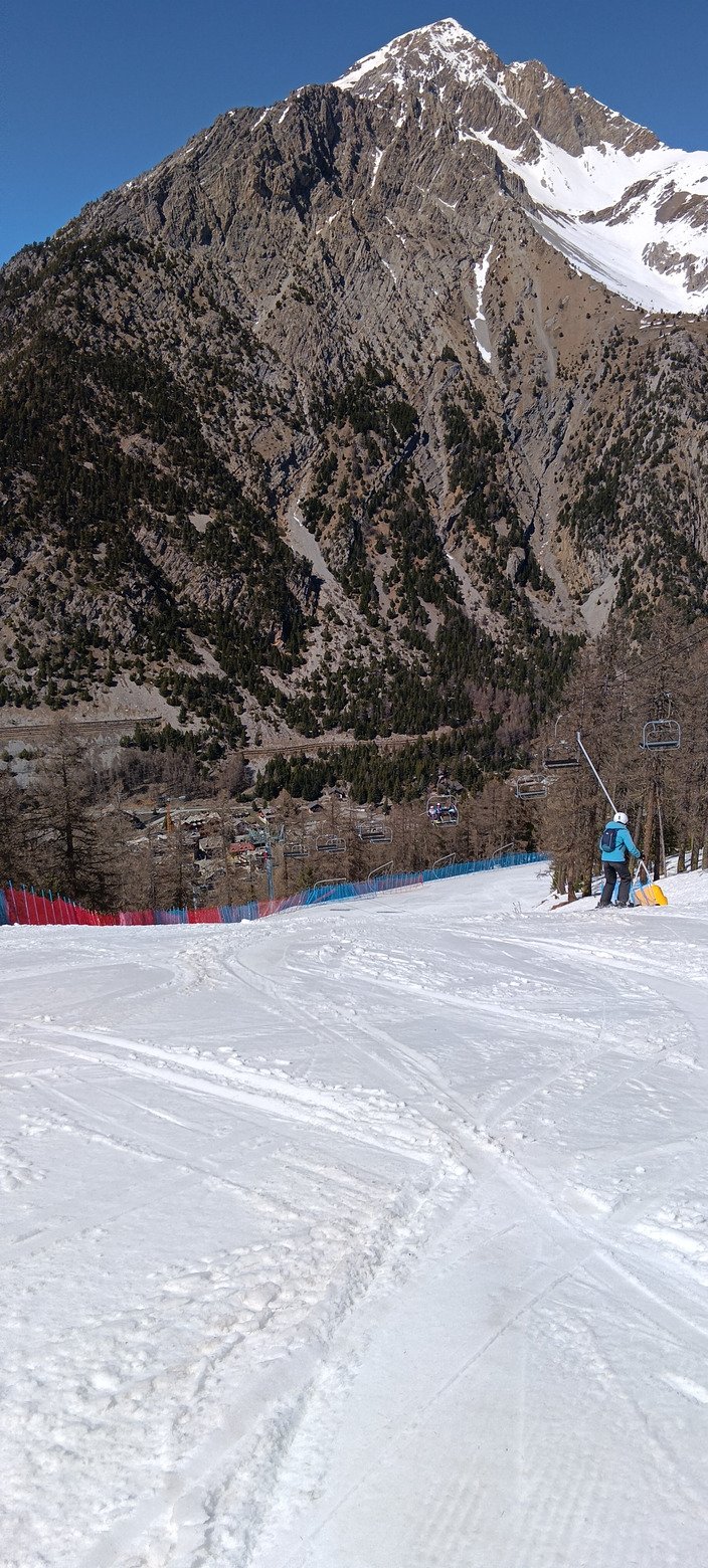 Bon, y'a encore des progrès à faire (un sympathique mono ESF m'a gentiment fait remarquer que j'étais à l'envers par rapport à la jambe qui se plie 🤣, et dans les pentes un peu plus raides, le mouvement n'est pas bien naturel), mais c'est bien cool ! Le test des skis/fixation est validé, pas celui des chaussures, trop étroites.