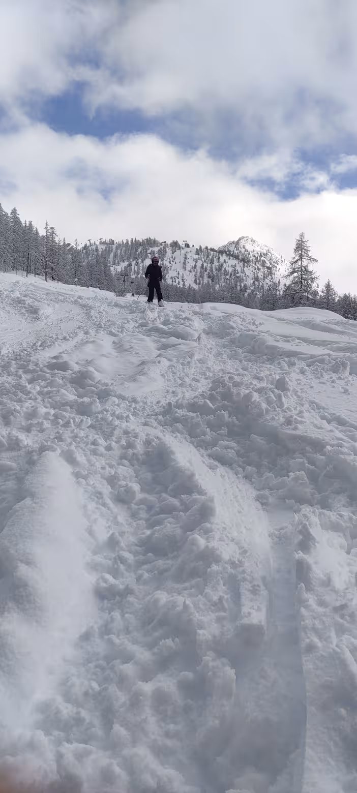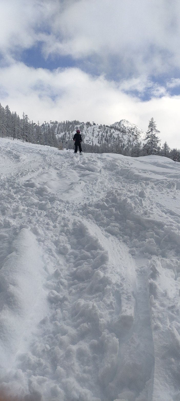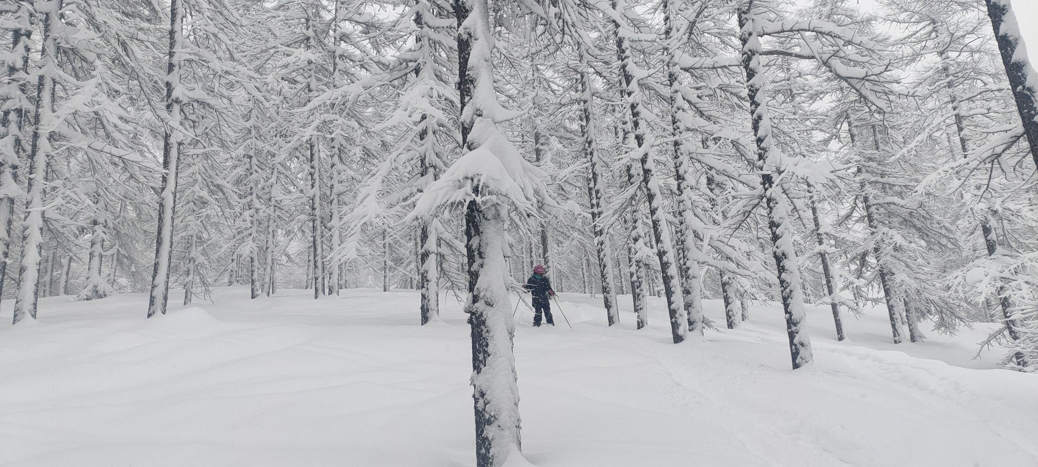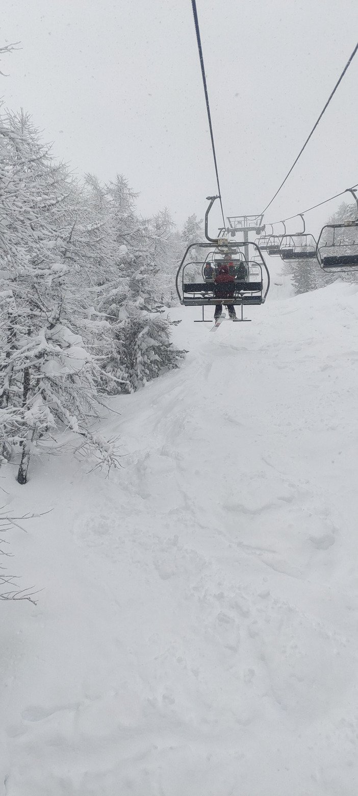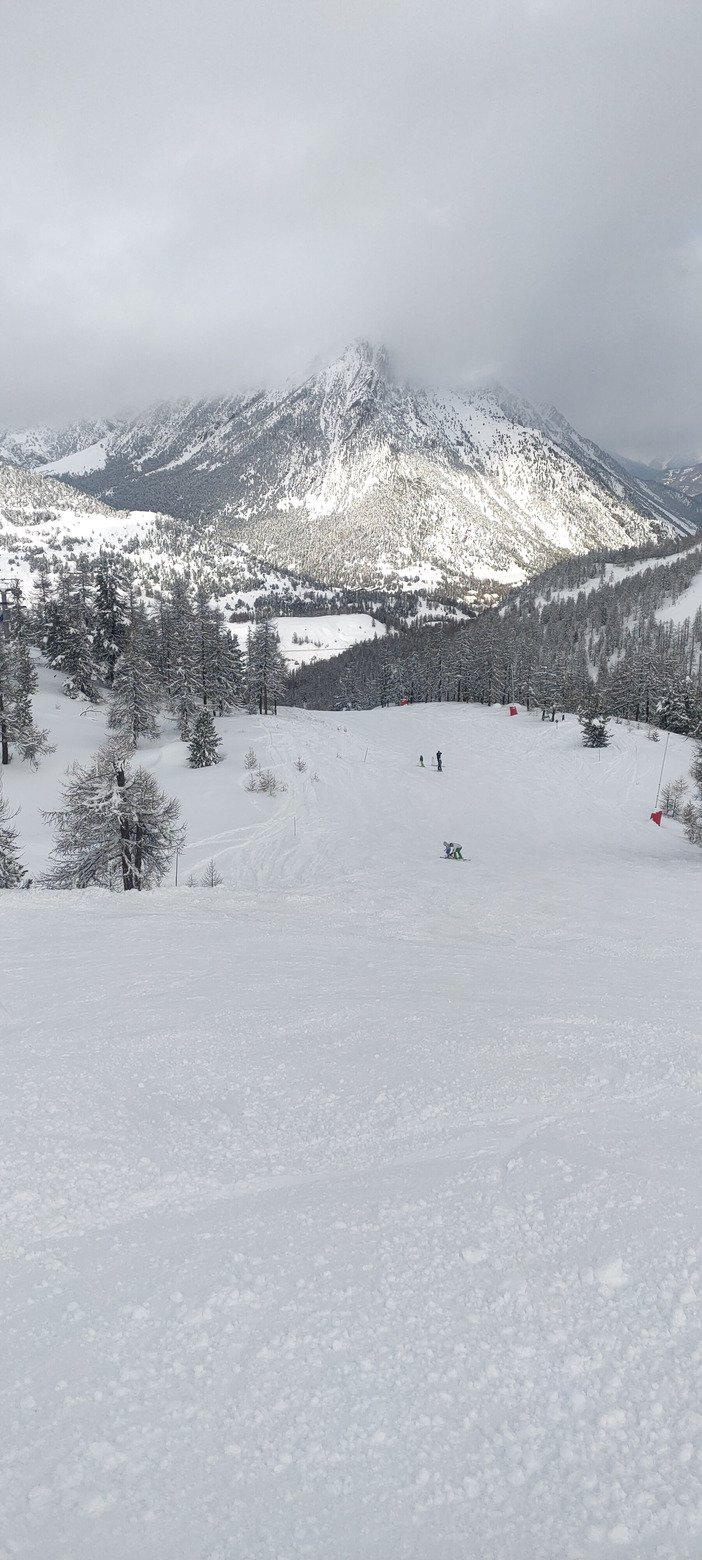 En commençant vers 11h30, les pistes étaient en poudre un peu traffolée/bosselée, mais il restait des bonnes zones de poudre bien profonde en dehors. C'est bien simple, on en avait jusqu'aux genoux, voire jusqu'aux cuisses, à chaque virage 😀.