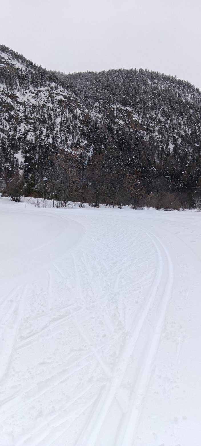 Ça se détériore sur la deuxième heure, le fart ne faisant plus effet, et le soleil arrivant doucement. Ce n'est pas un franc ciel bleu non plus, mais ça suffit à réchauffer la couche de neige récente en surface.