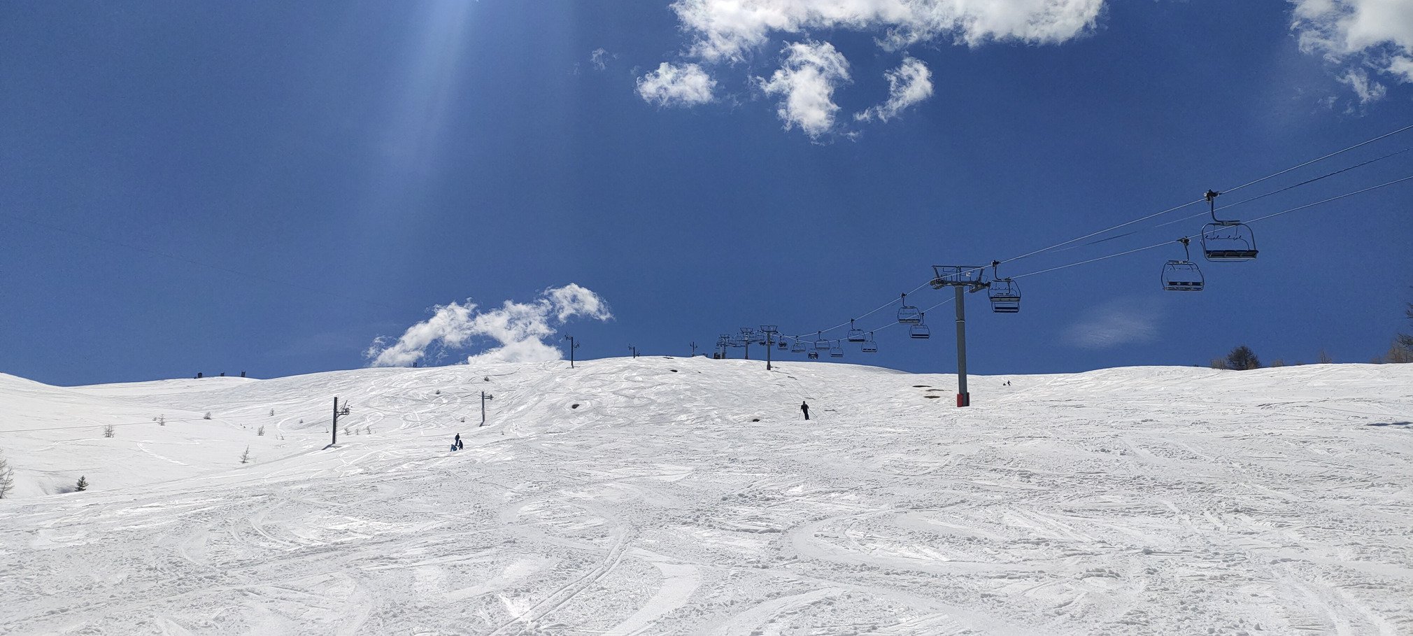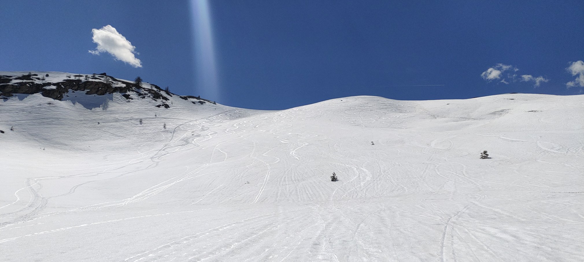 Alors que je m'attendais à ne trouver que du très lourd en hors piste, c'était finalement plutôt bon. Pas non plus de la moquette à poils courts, mais entre moquette à poils longs et transfo lourde bien skiante. Le meilleur se trouvant sur les Gondrans, où un léger air frais a permis le maintien d'une belle qualité de neige.