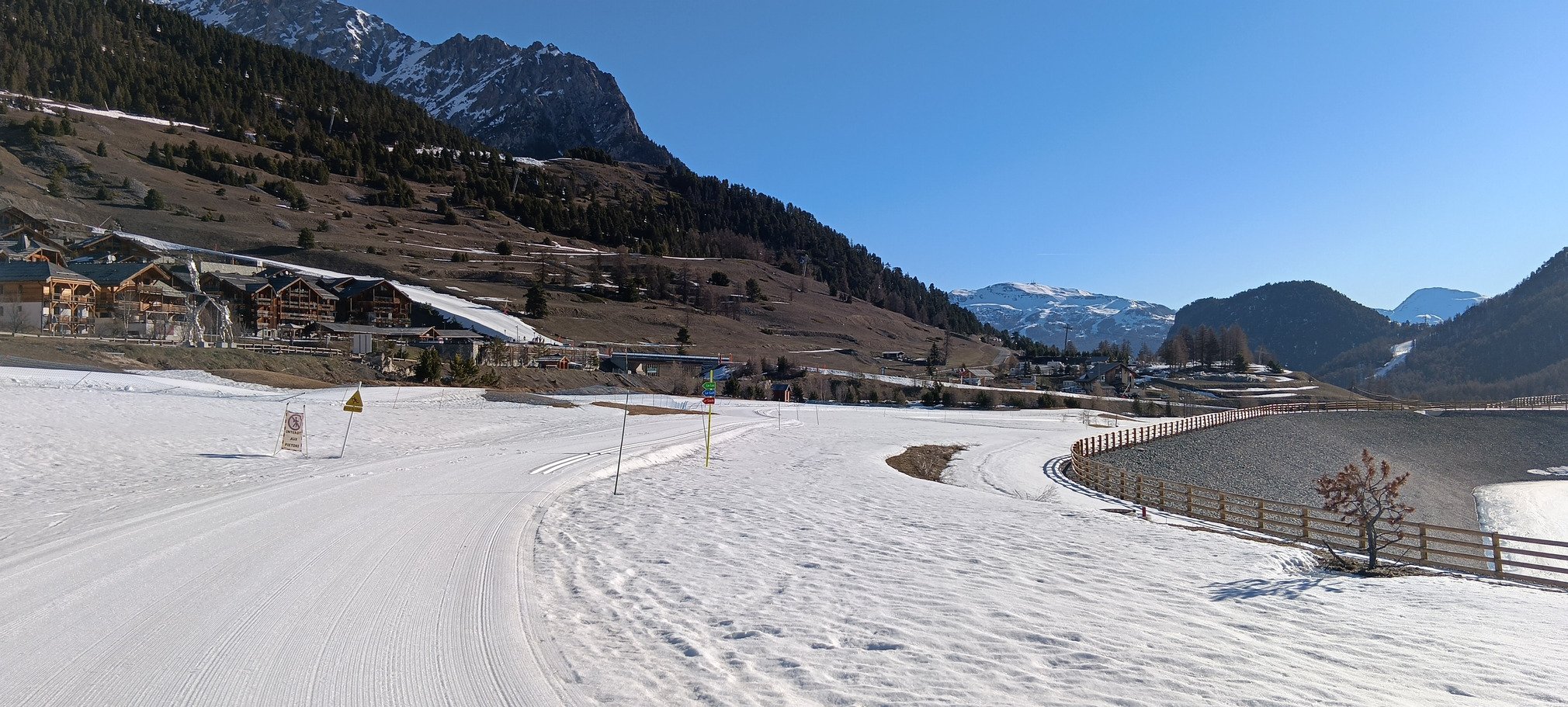 Bonnes conditions ce matin pour le skating, grâce à un bon regel, et un damage de qualité. On est typiquement en conditions de printemps, avec une neige bien dure tôt le matin, puis qui s'assouplit.