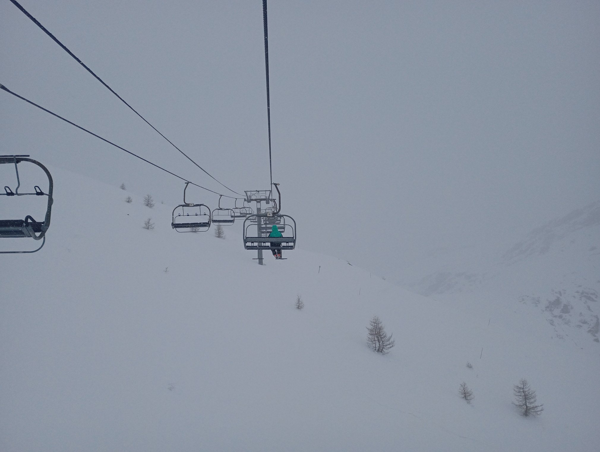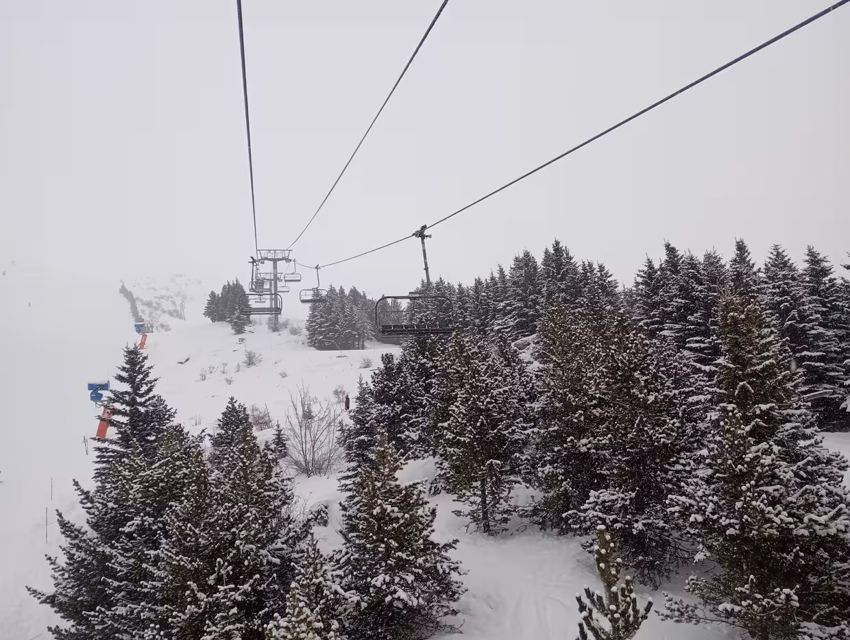 LPN à 1500 avant le col de Mens, 1700 après ce matin. De gros flocons sur la route en arrivant vers la station. 15-30 cm (voir plus tout en haut), mais gâché par une mauvaise visibilité. Les pistes n'ont pas été redamées et donc belle couche de poudreuse, mais qui est rapidement tracée et se transforme en champs de bosse.