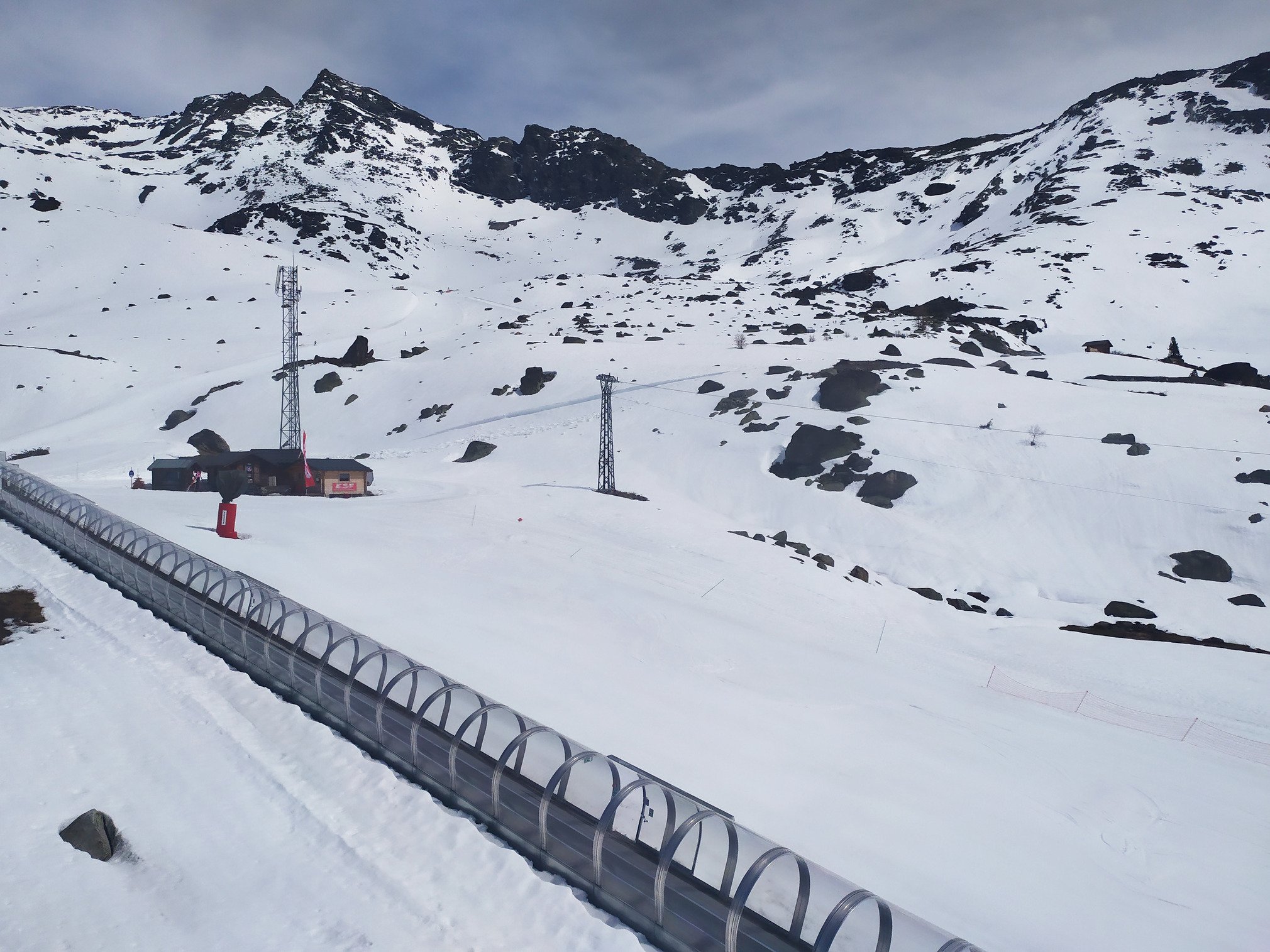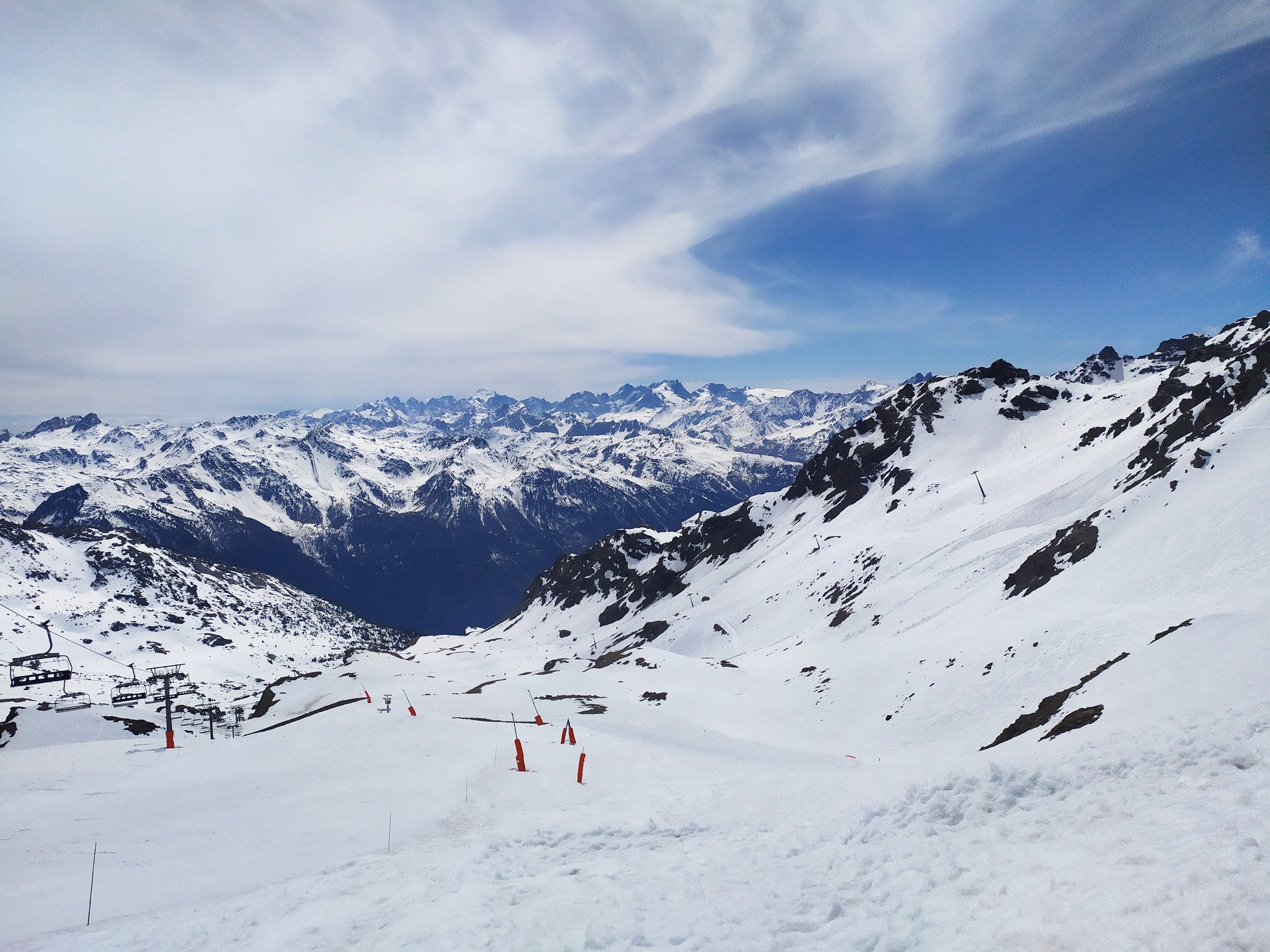 -peu de monde. piste encore bien skiables. snowpark en excellente condition. à noter que le kicker XXL s est bien tassé avec la neige humide qui ne supporte plus bien le damage, mais la parabole reste bien smooth et prenable