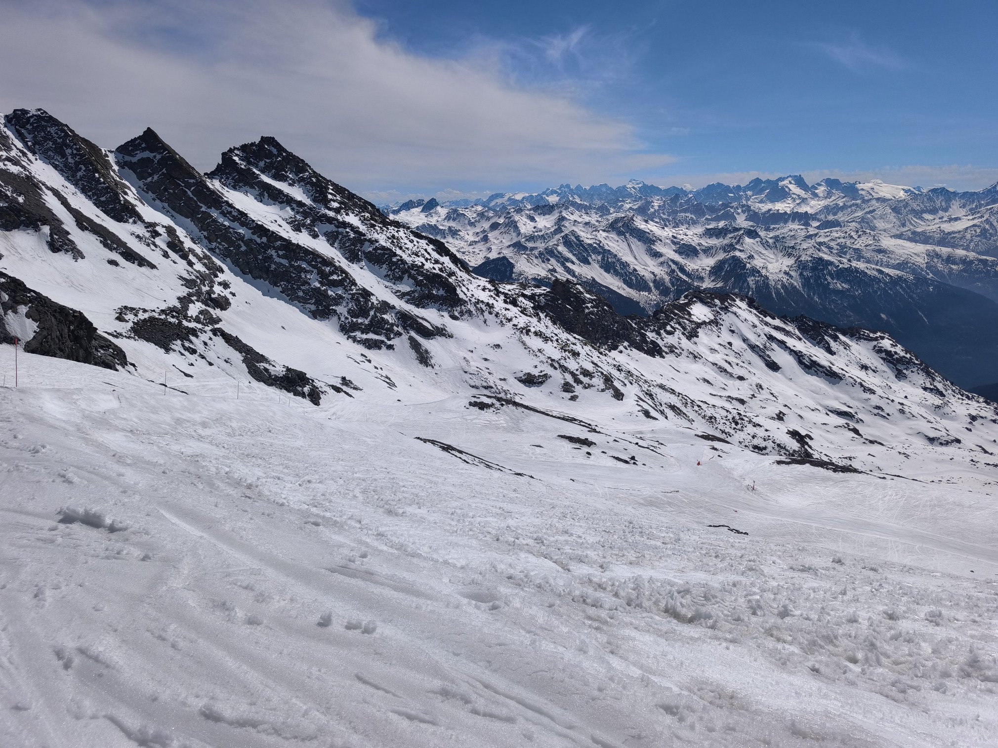 - De meilleures sensations sur la Combe Rosael qui a été damée aujourd'hui. Je ne suis pas pour le damage à tout prix des pistes noires (sinon Adieu les murs de bosses !) mais avec la neige de printemps dans les pentes exposées Sud-Est il faut un minimum.