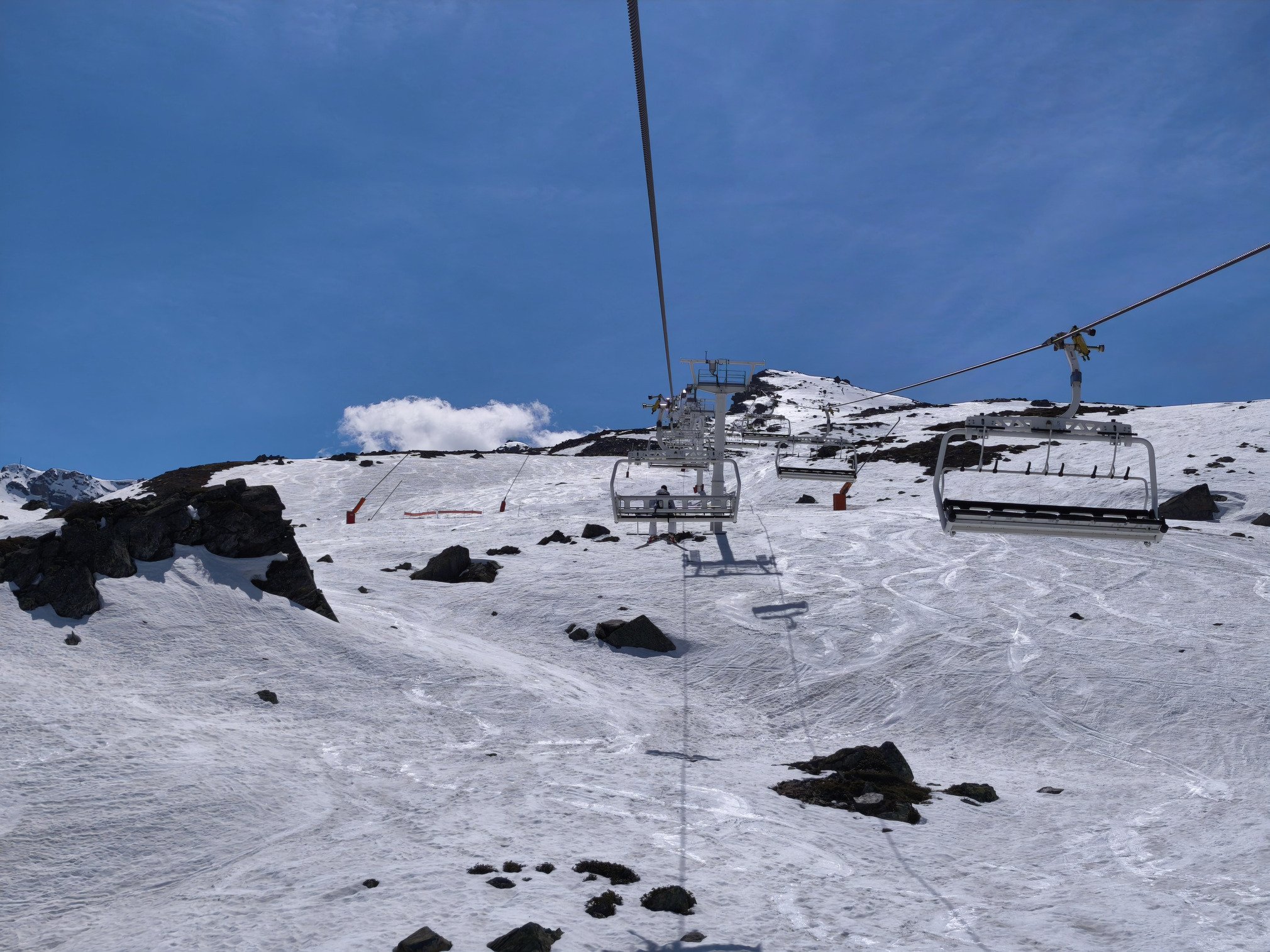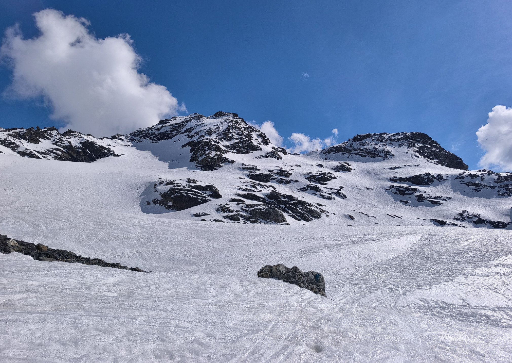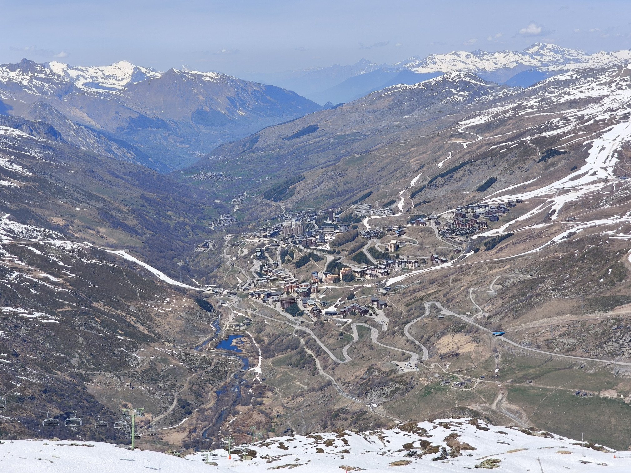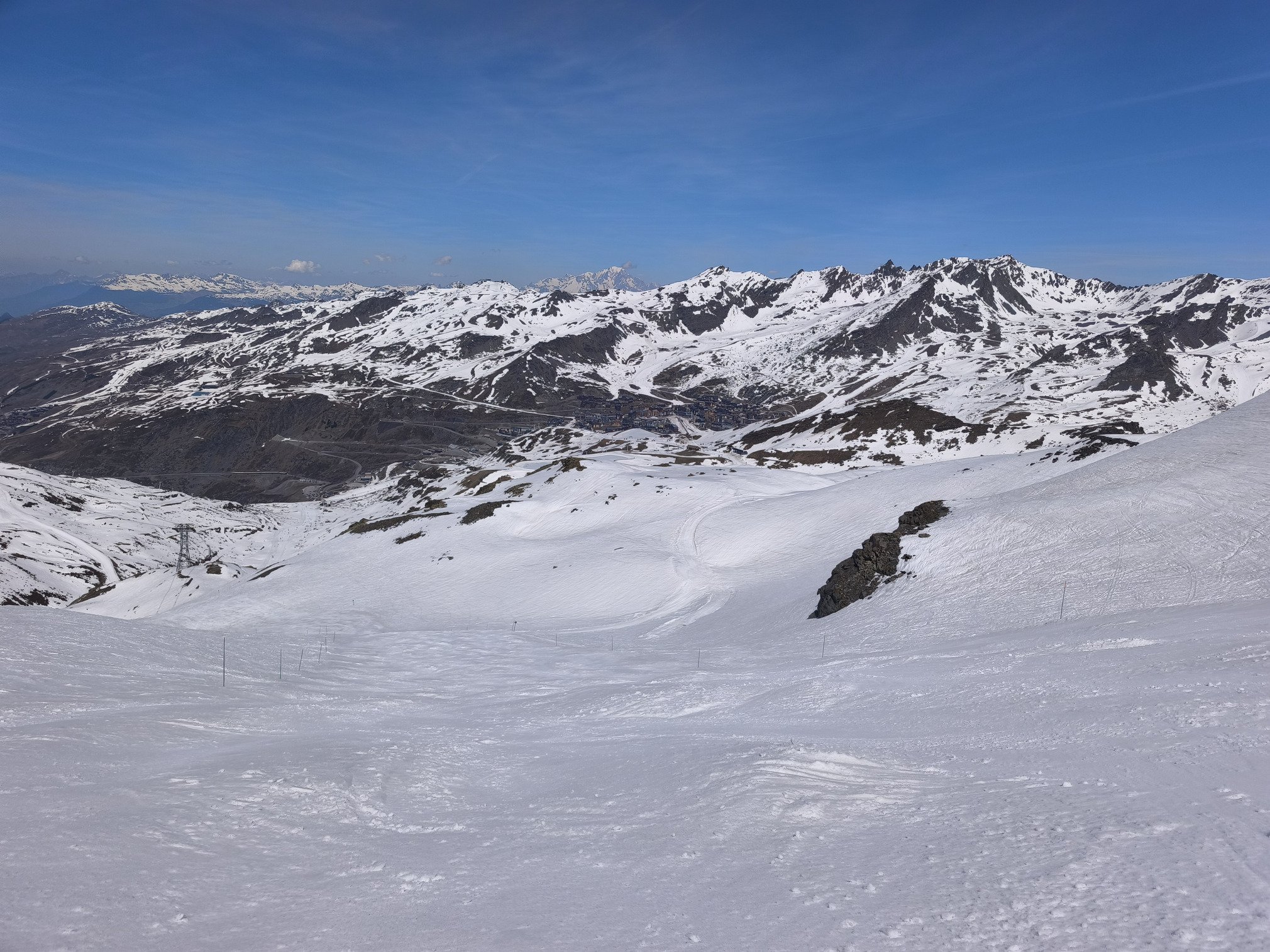 Le secteur de Boismint et de Plan de l'Eau sont encore ouverts contrairement aux saisons dernières durant l'ultime semaine d'exploitation de la station. Cela me permets de découvrir les pistes desservies par l'efficace TSD Boismint en mode neige de printemps (photo 4). Pour un espace de moindre altitude (entre 2100-2670 mètres) j'ai été étonnée par la bonne tenue de la neige sur la piste rouge de Haute Combe. Large damage est neige très glissante avec très peu de fréquentation. La neige est un peu plus travaillée et lourde sur la bleue de Blanchot mais c'est propre sans cailloux qui sortent du terrain pourtant très propice. Une belle surprise de fin de saison et quelle vue sur les Ménuires (photo 5) ! Je renonce à descendre sur Plan de l'Eau en contrebas car il fait trop chaud et j'ai hâte de regagner de l'altitude ! 🥵