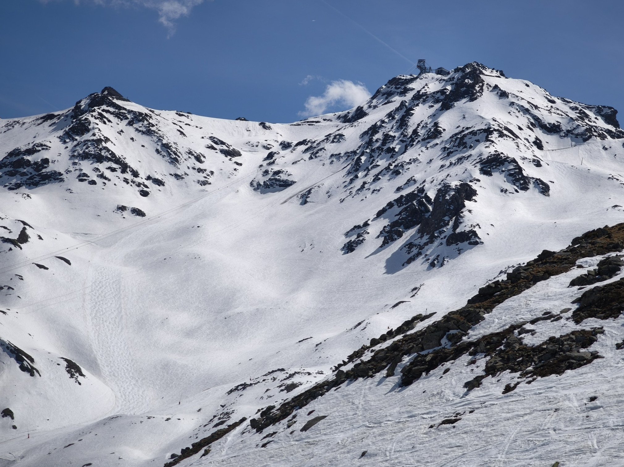 L'heure tourne et je dois garder un oeil sur la montre car j'ai pris un "forfait 4H Orelle-Val Thorens"... Un coup de funitel Thorens, un Chocard de qualité avant de rejoindre le Col et de basculer sur le vallon de Lory. Soupe de fin d'aprem qui colle un peu mais ça laisse le temps d'admirer le paysage et la magnifique face nord du Bouchet (photo 8).