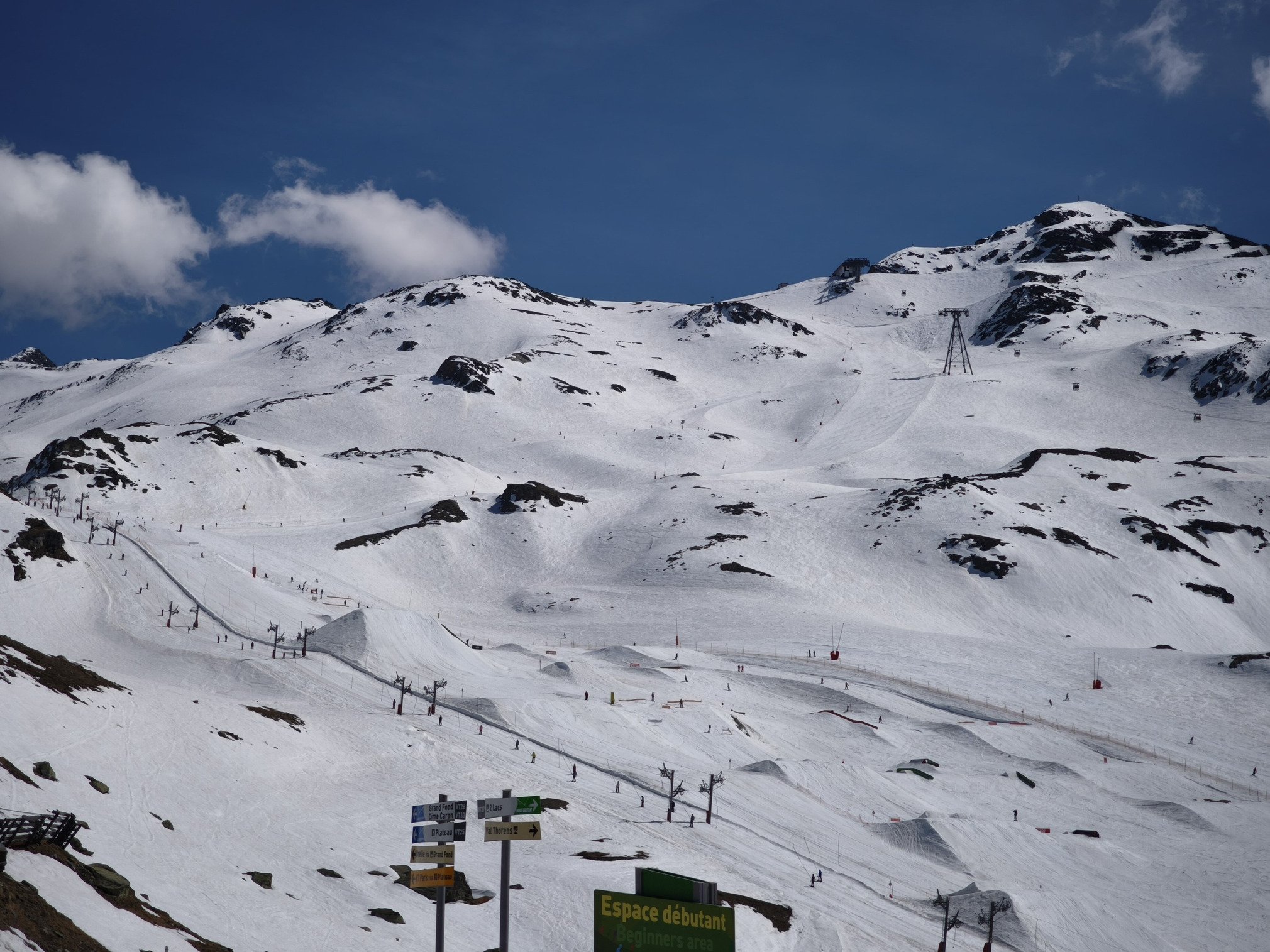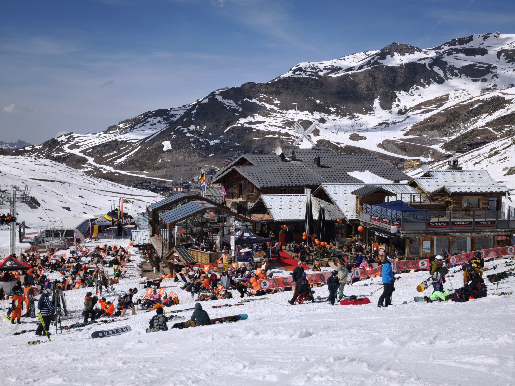 Secteur Moraine et Portette : nombreuses silhouettes d'orange vêtues ne serait-ce pas la Dutchweek ? Grosse ambiance aux Chalets de Thorens (photo 7) et davantage de monde sur les pistes. Sur la piste rouge de Portette la neige est restée très agréable à skier avec un bon grip même en milieu d'après-midi sur le haut, soupe de printemps ensuite. Je ne suis pas sortie des jalons.