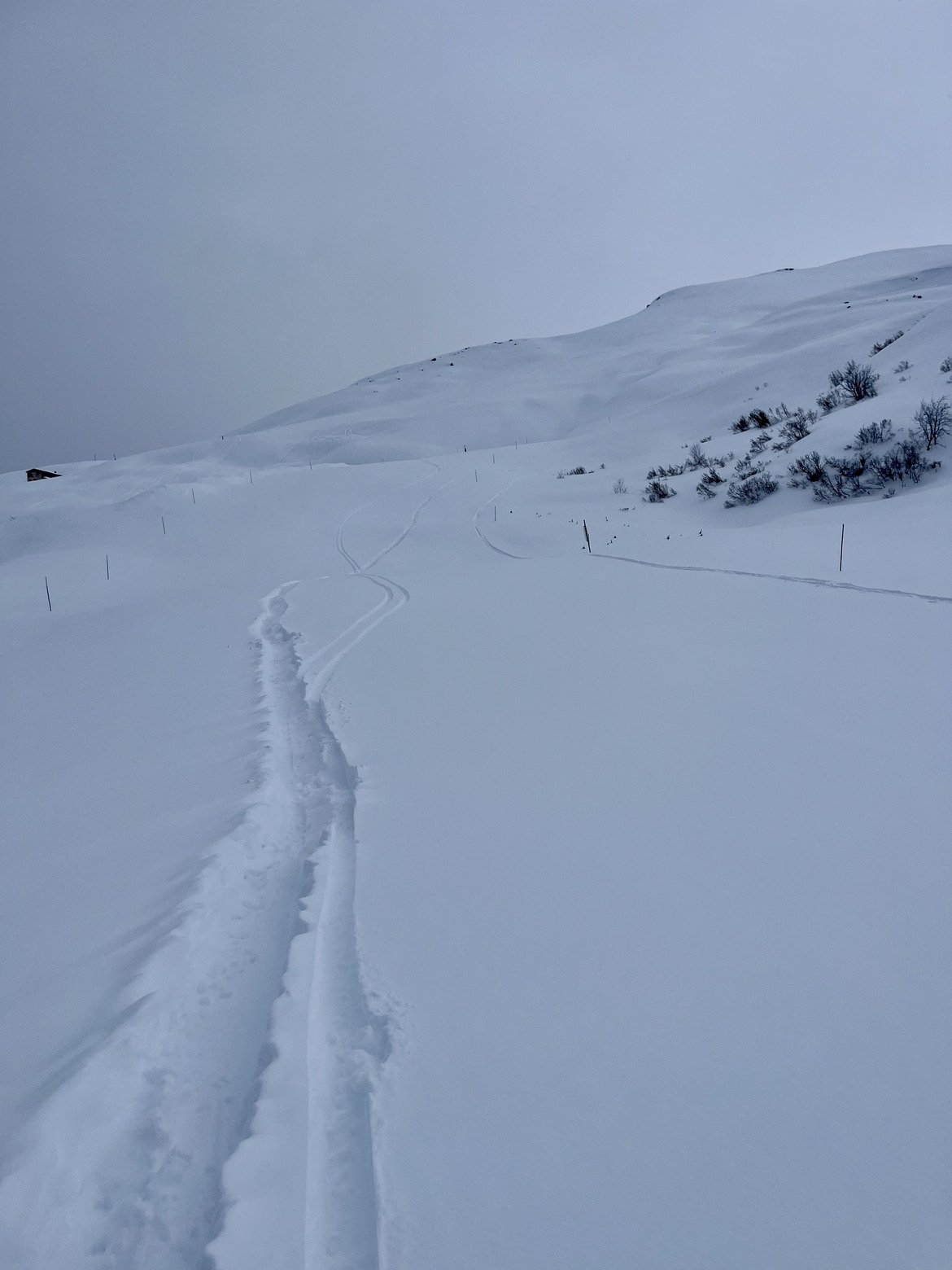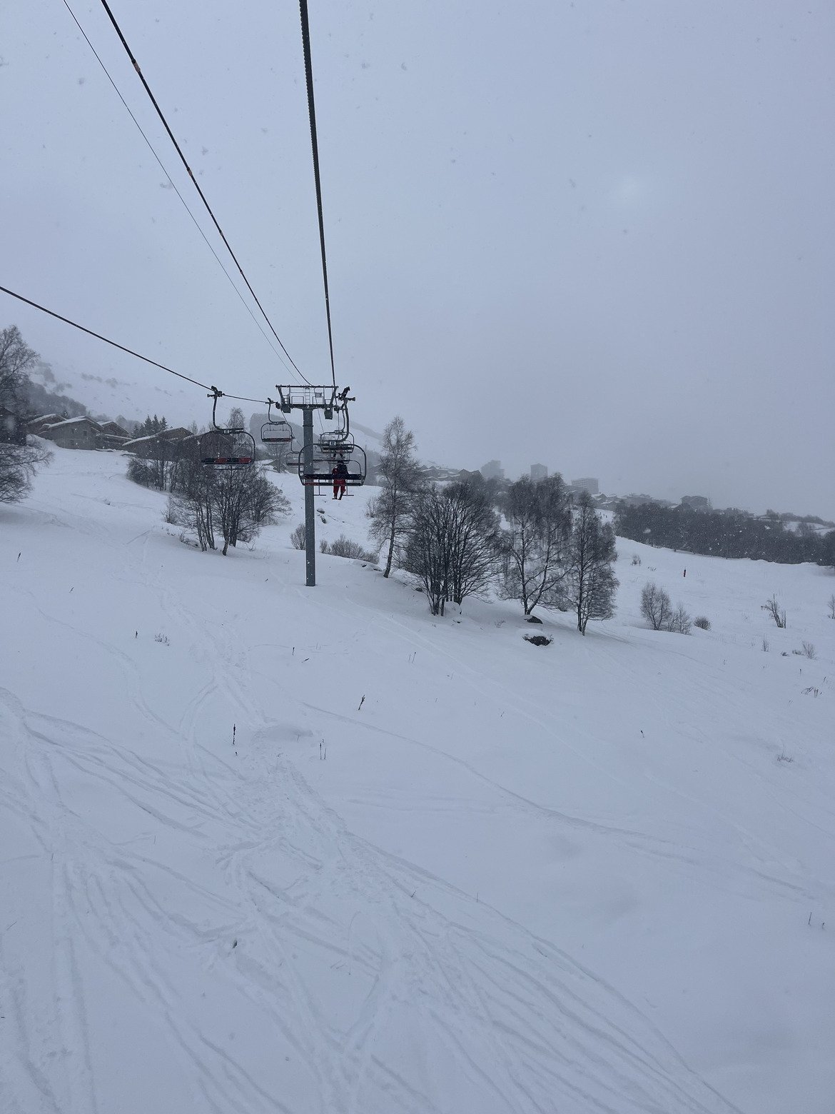 Je décide, pour rester safe, d’aller poncer les pistes Chefferie et Liberty Ride Riondaz, piste freeride nature sur Saint-Martin. Au vu des conditions météorologiques, la station est vide et me permet d’enchaîner les runs tout en faisant encore la trace.