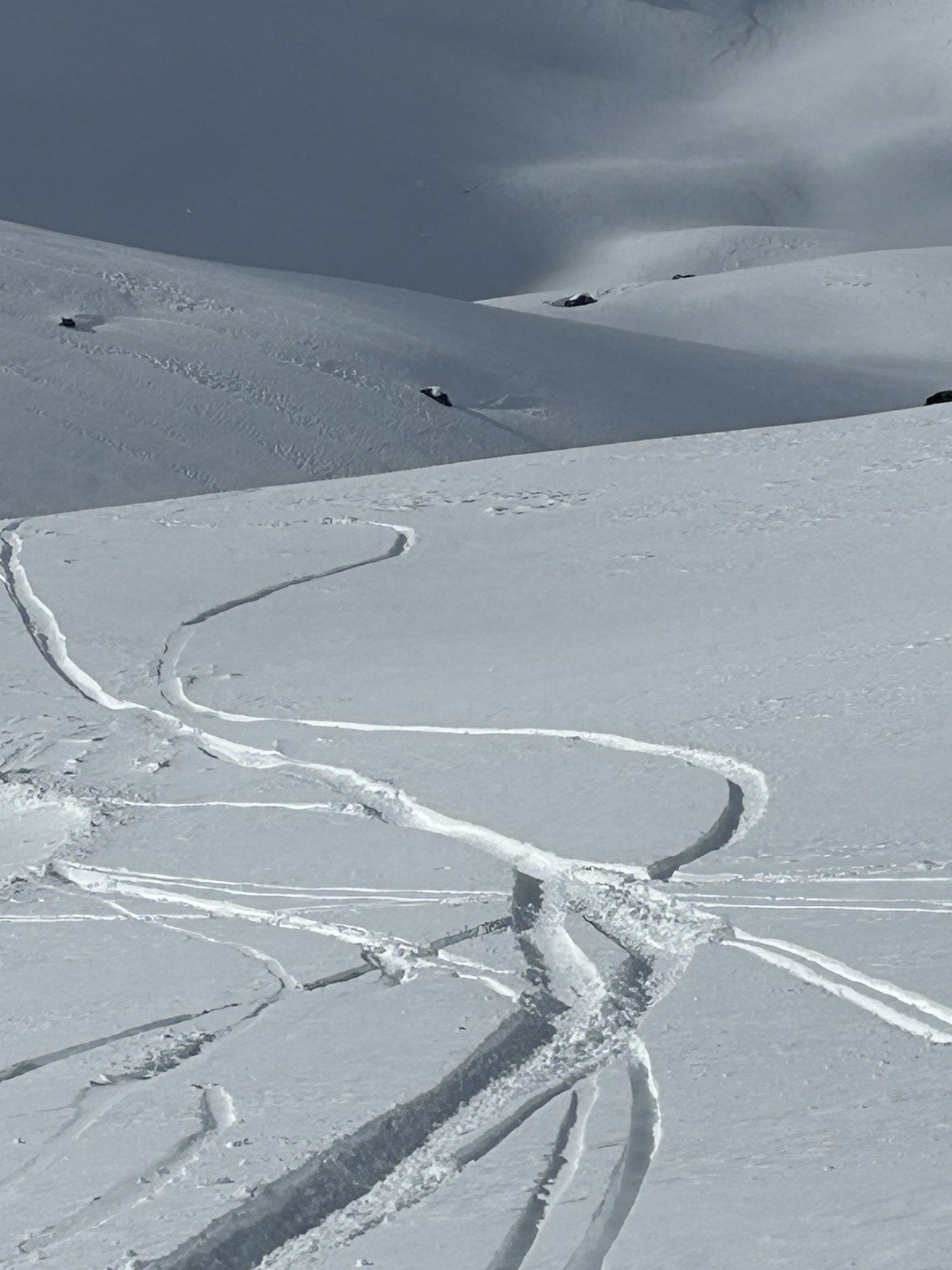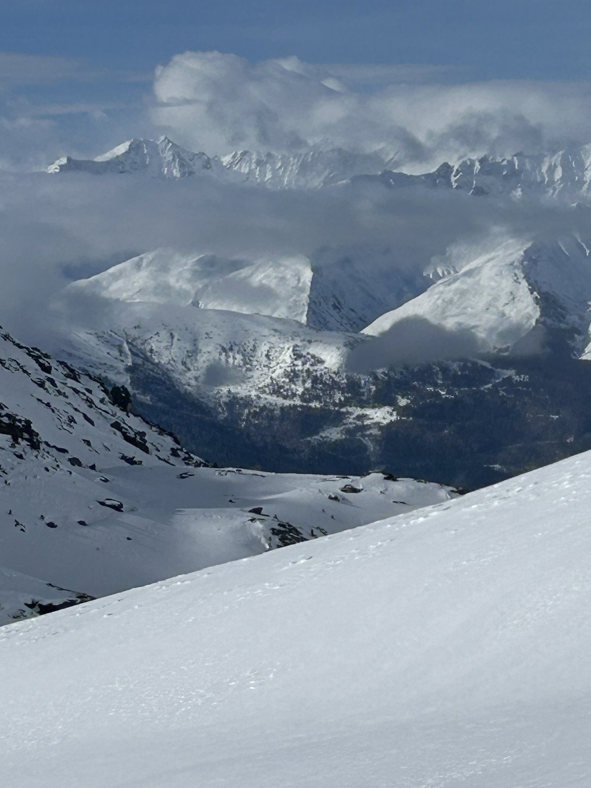 Très belles éclaircies et les combes à l’abri du vent bien que tracées sont en bonne neige un peu soufflée mais jamais carton.