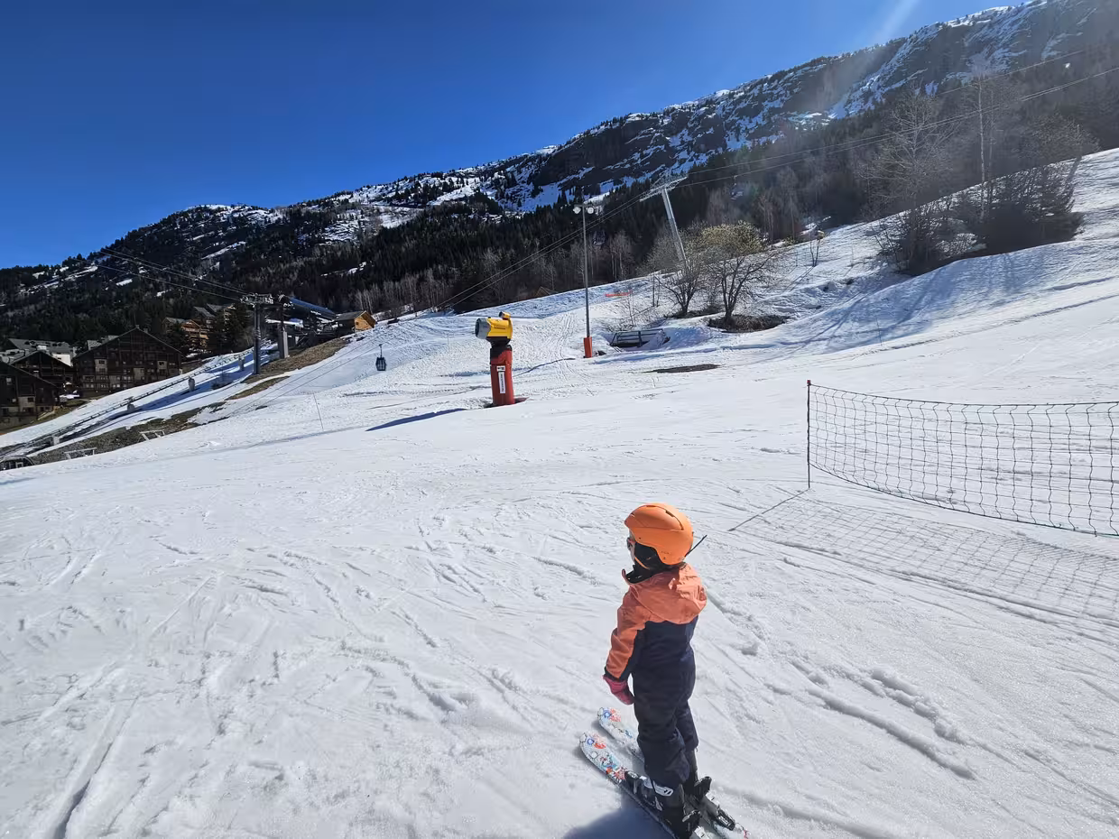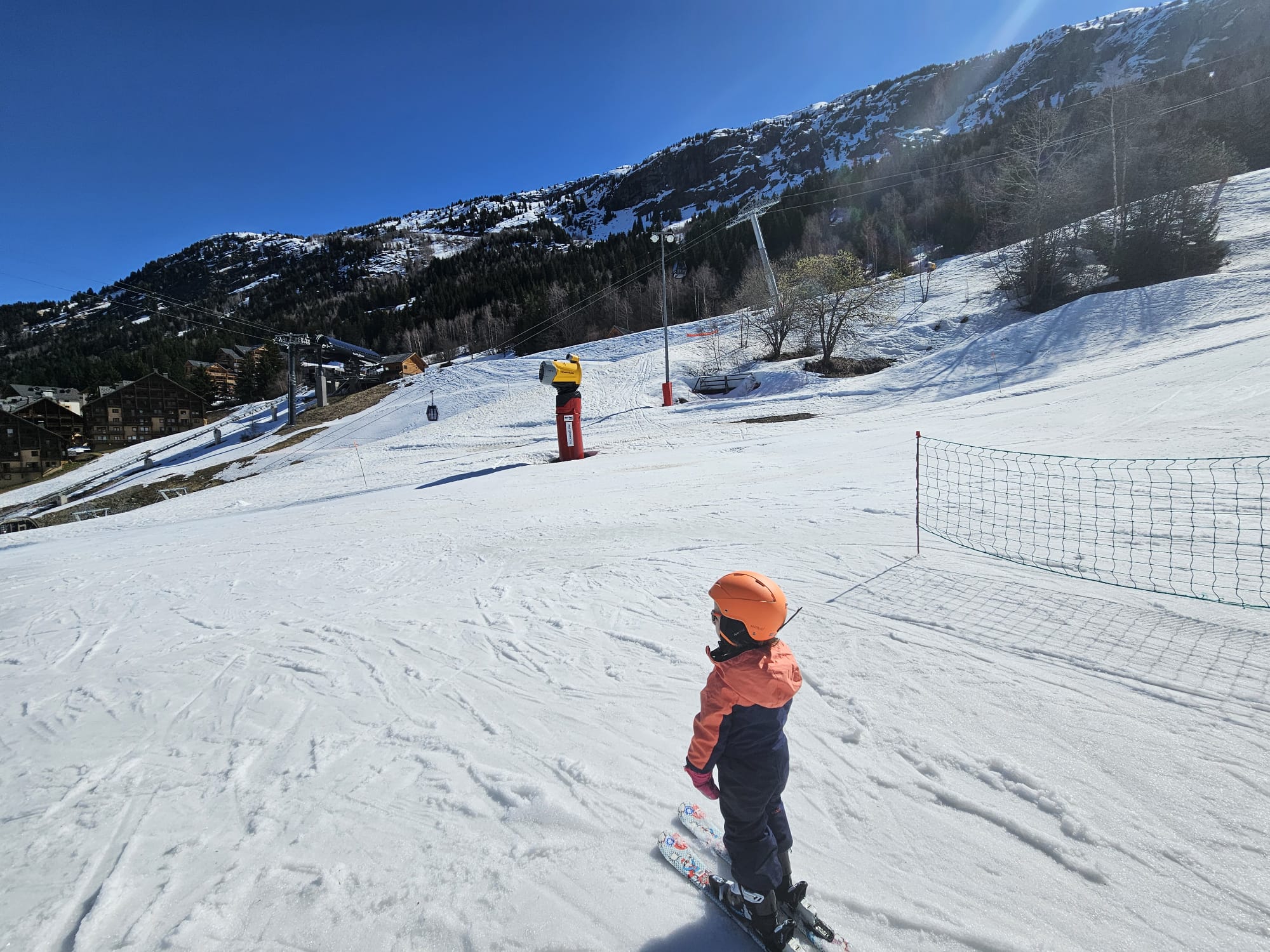 Briefing technique au sommet du tapis : vent nul, neige déjà bien transformée par le soleil, visibilité parfaite sur le toboggan de la salle polyvalente.