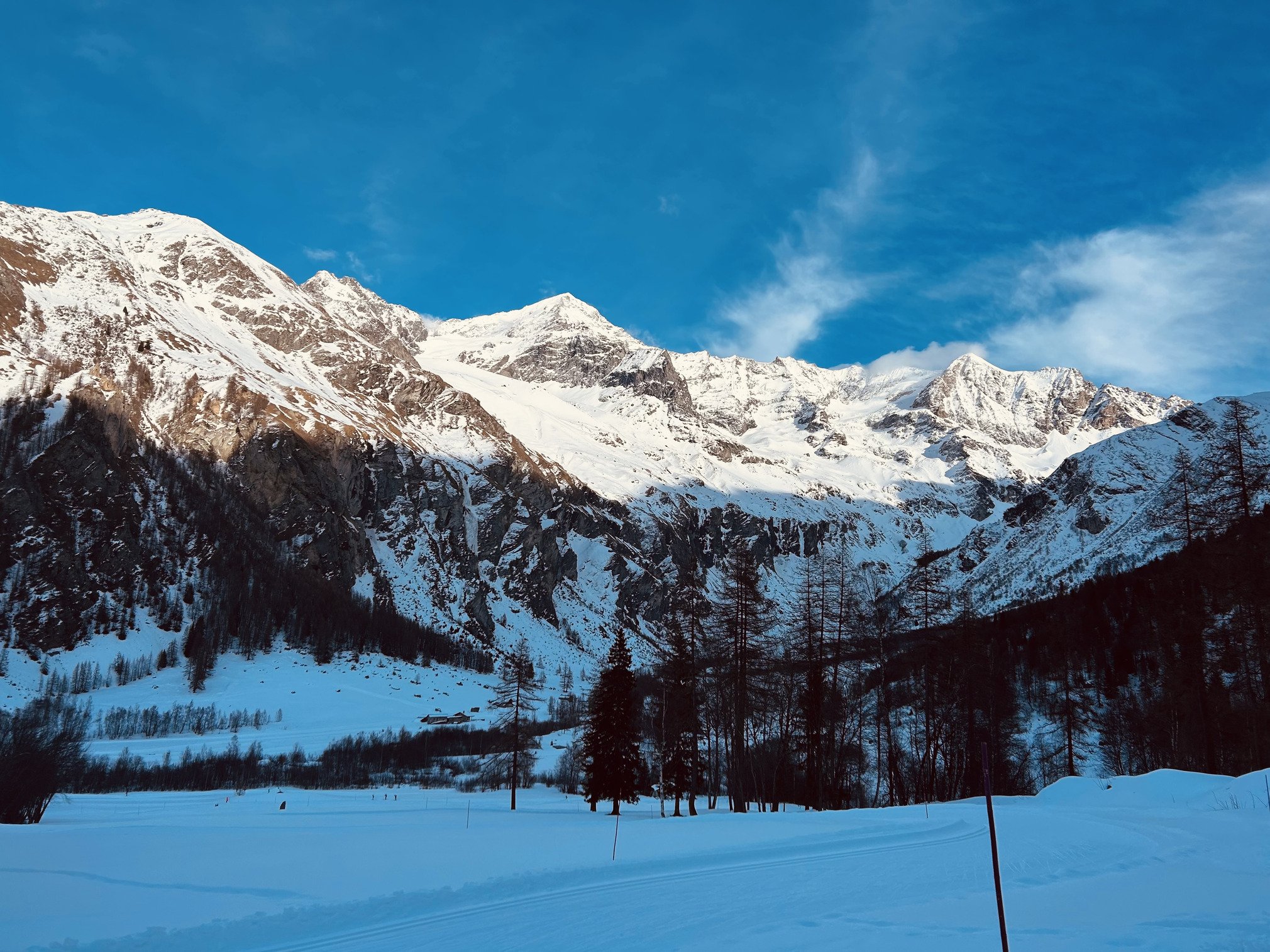 Le ciel est bleu, il y a une très bonne couche de neige qui est restée de bonne qualité!!